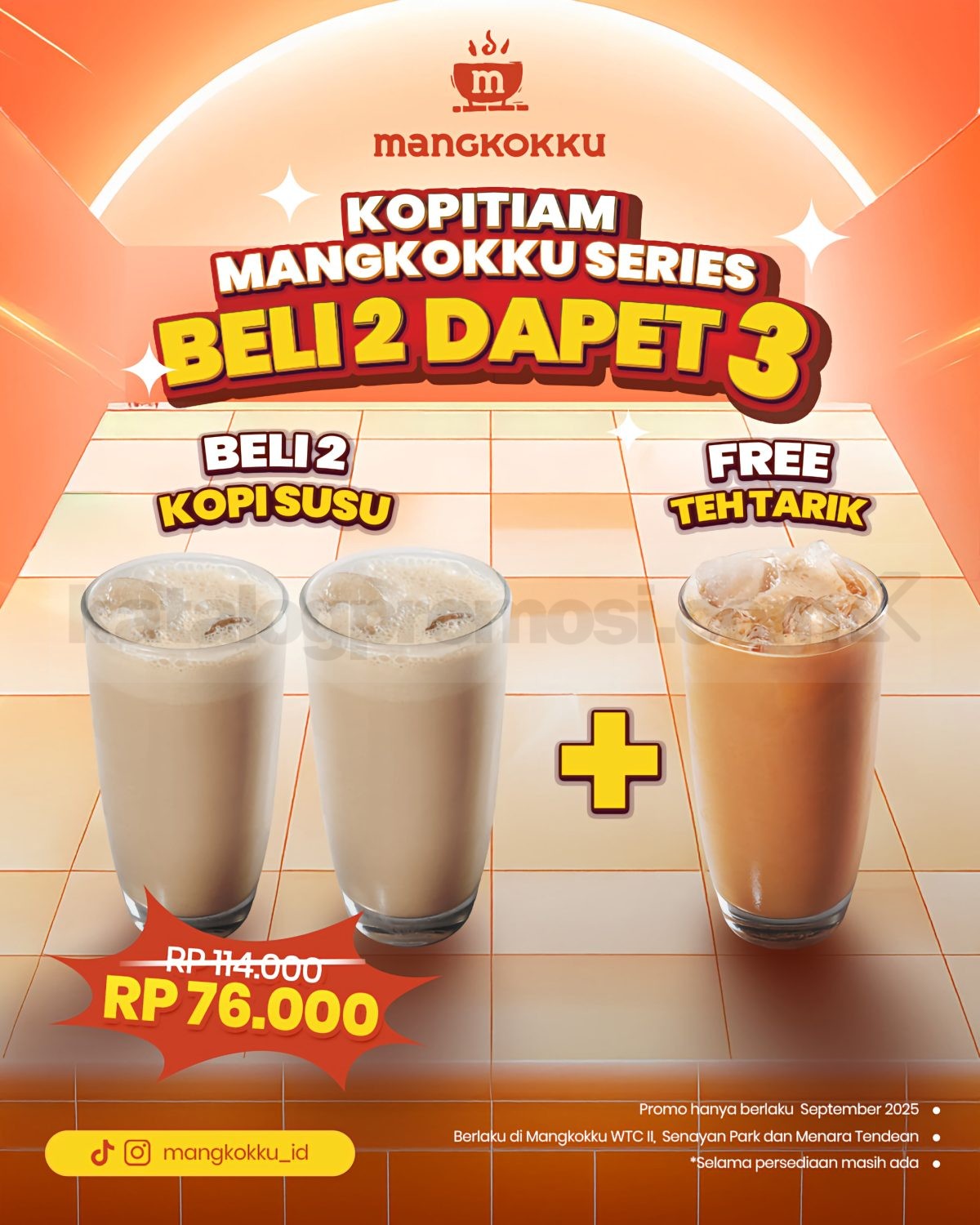 Promo Mangkokku Kopitiam Series Beli 2 Kopi Susu Gratis 1 Teh Tarik, Berlaku mulai 1-30 September 2025