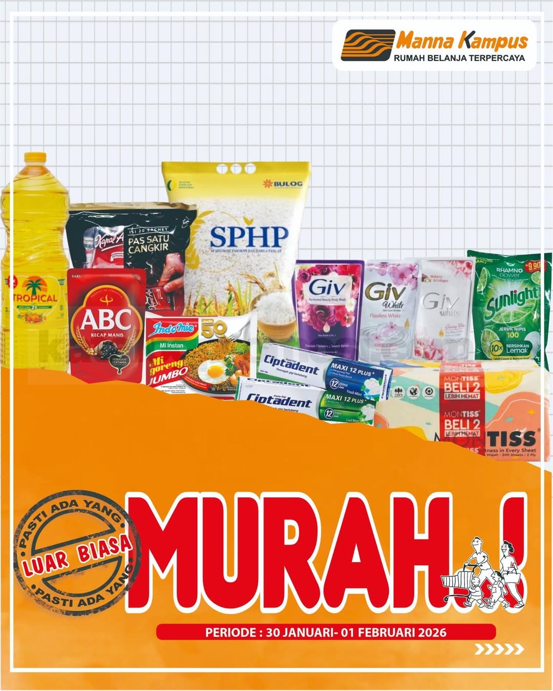 Promo JSM Manna Kampus periode 30 Januari – 01 Februari 2026, belanja kebutuhan harian harga spesial cuma di seluruh outlet Manna Kampus, buruan sebelum kehabisan!