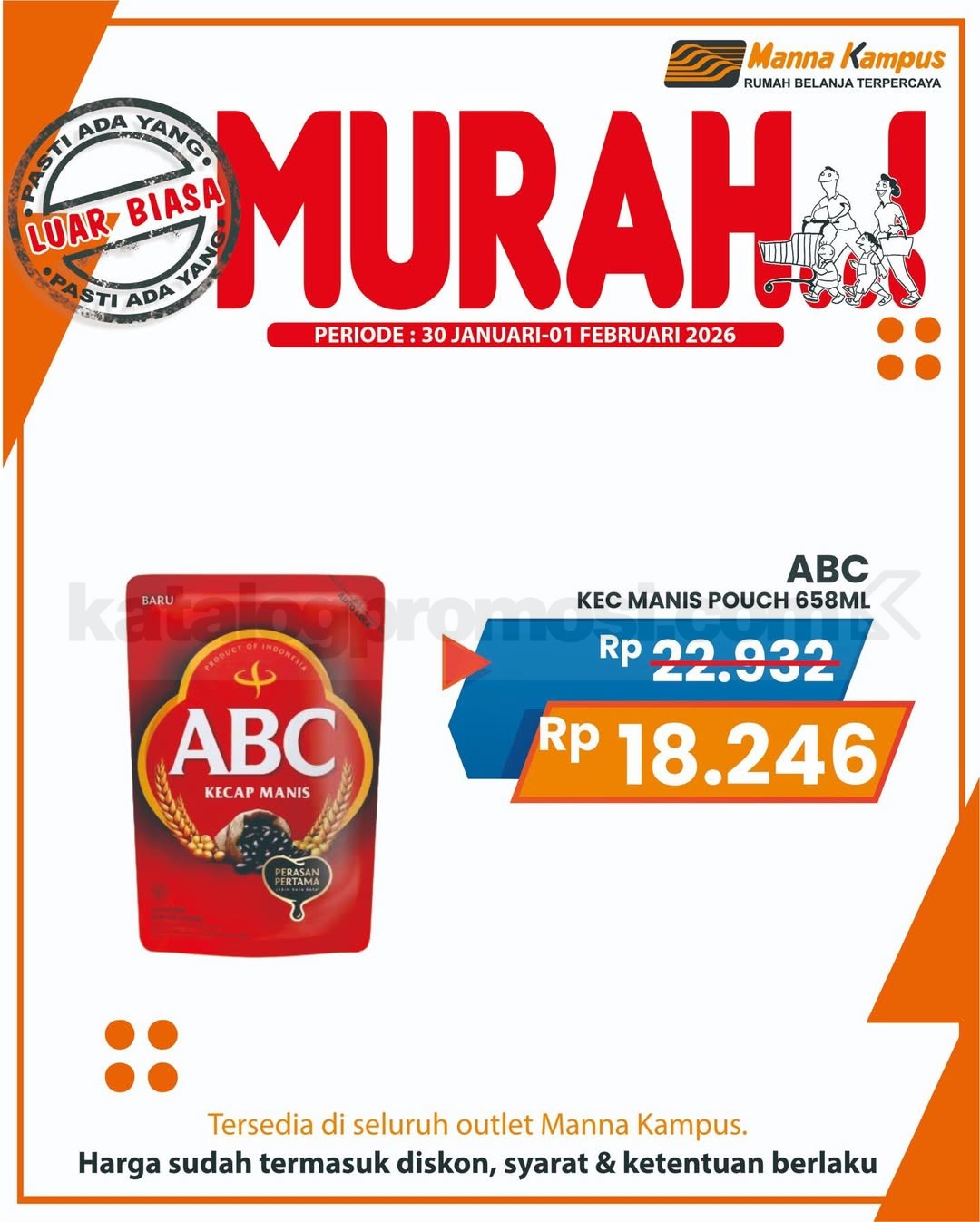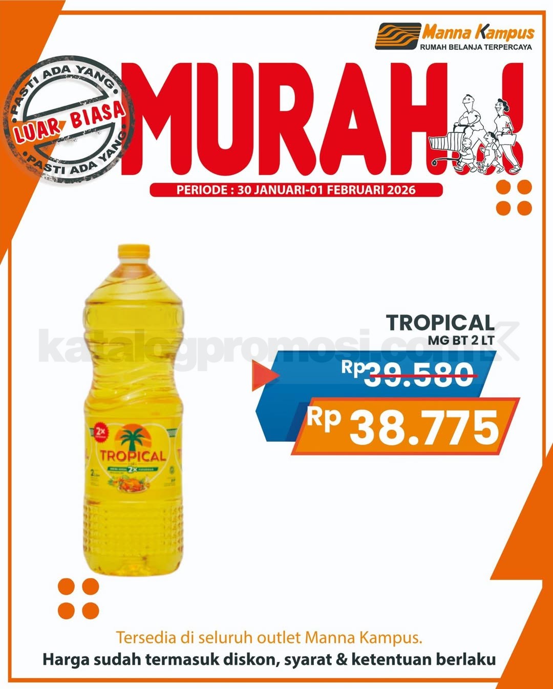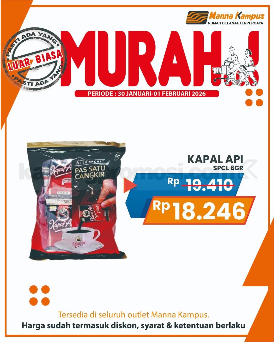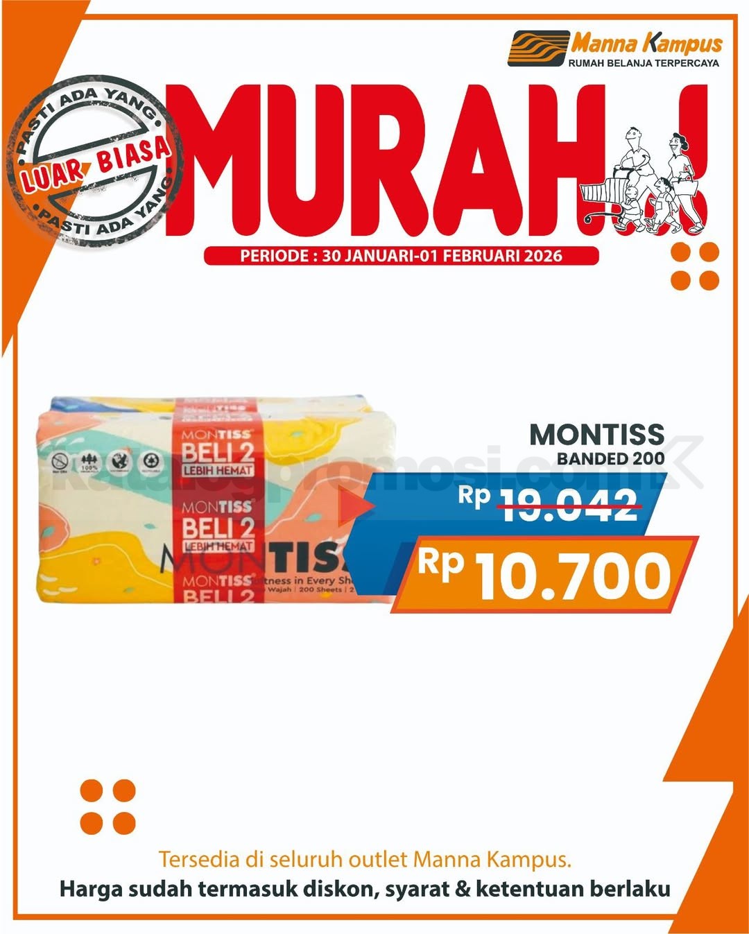 Jangan sampai kelewatan promo JSM Manna Kampus 30 Januari – 01 Februari 2026, belanja kebutuhan harian harga spesial cuma di seluruh outlet Manna Kampus!