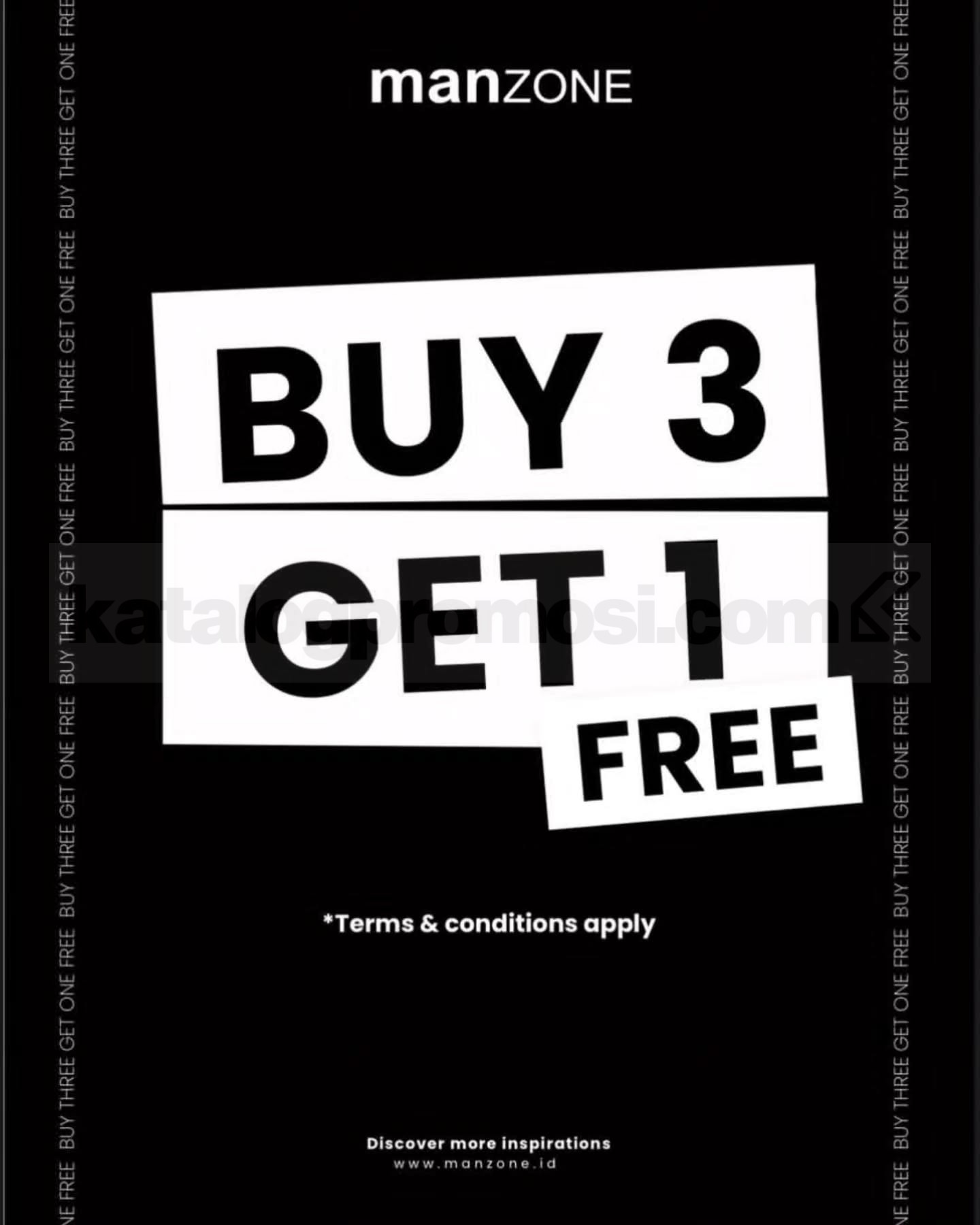 Promo berlaku untuk pembelian produk MANZONE dengan mekanisme Buy 3 Get 1.