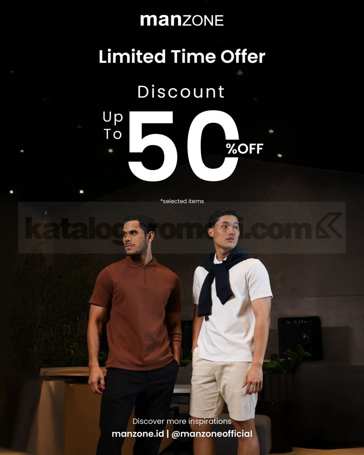 Promo berlaku untuk seluruh item fashion Manzone sesuai program Promo Manzone Diskon 50%.
