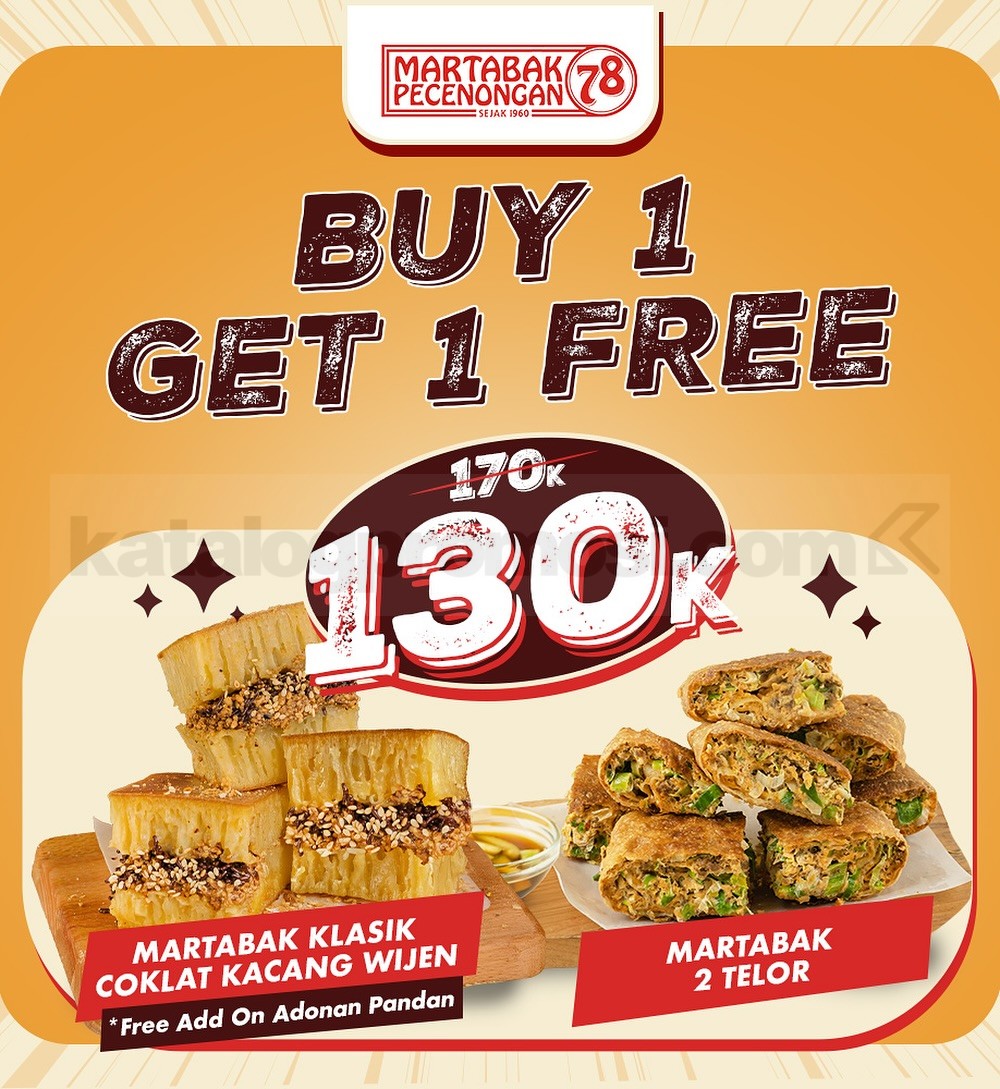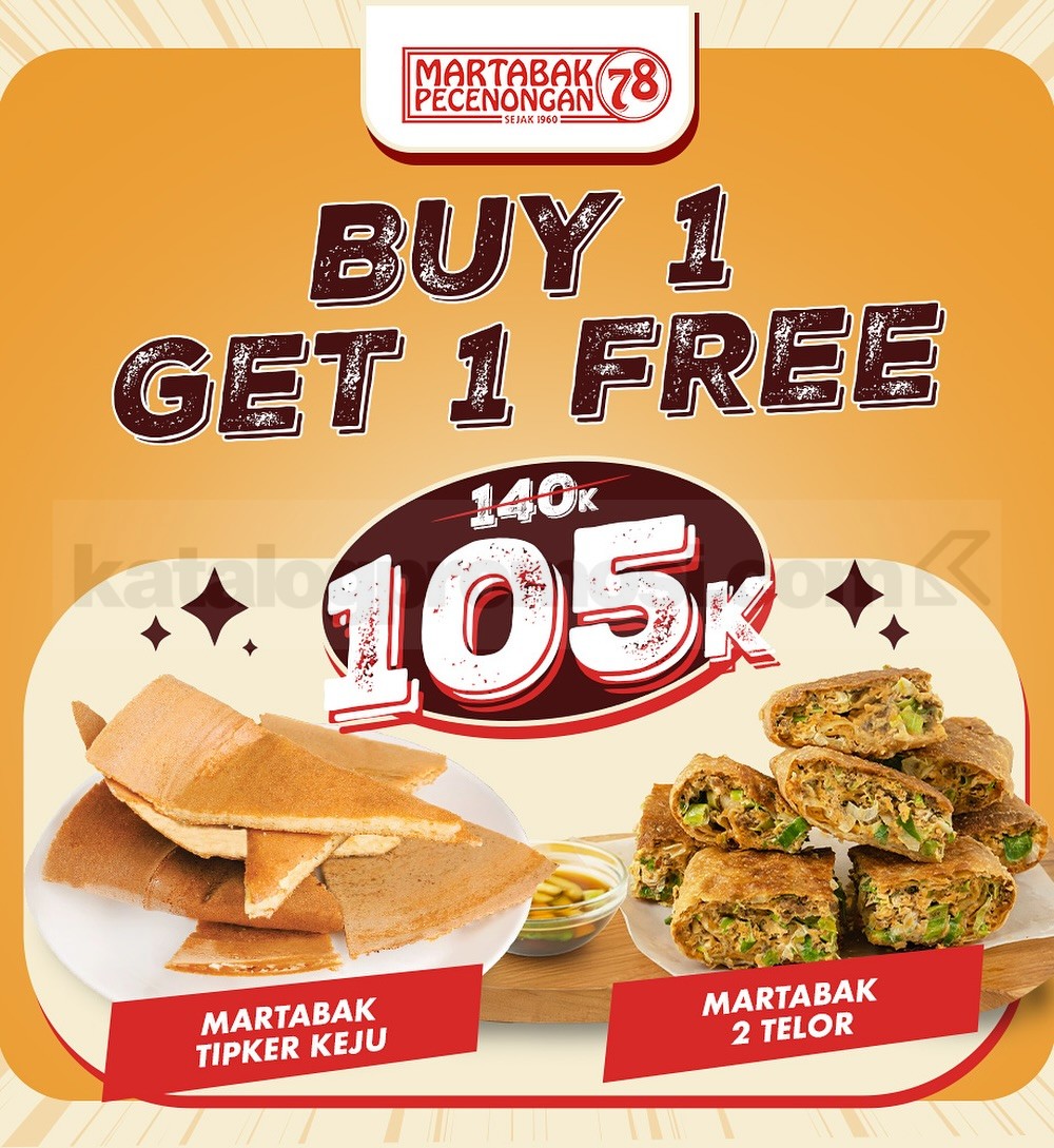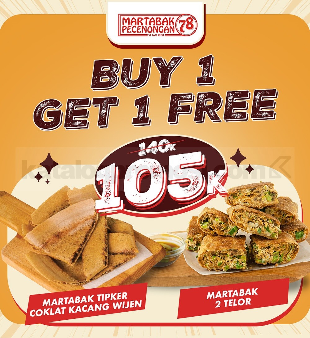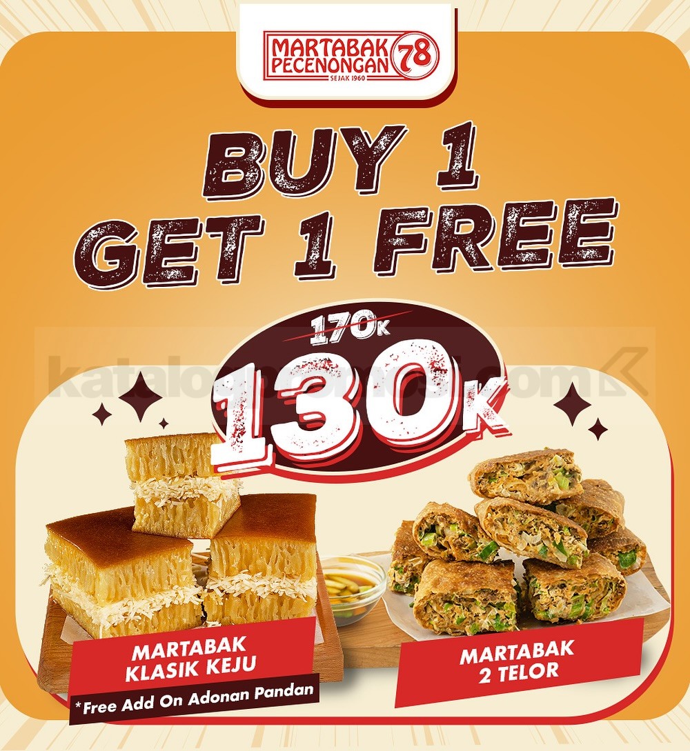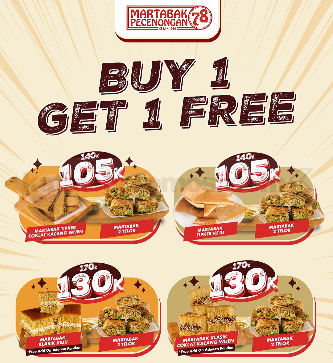 👉 Cek gambar promo Martabak Pecenongan 78 Buy 1 Get 1 Free di bawah ini untuk lihat varian dan cara pesan online!