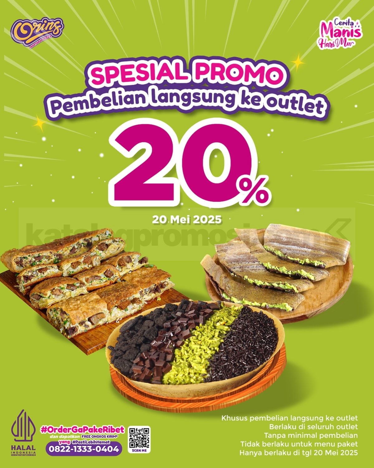 Promo Martabak Orins Alam Sutera diskon 50% berlaku 4 – 5 September 2025, lanjut diskon 20% sampai 19 September 2025, berlaku untuk semua menu.