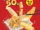 - Diskon 50% berlaku untuk semua menu tempura