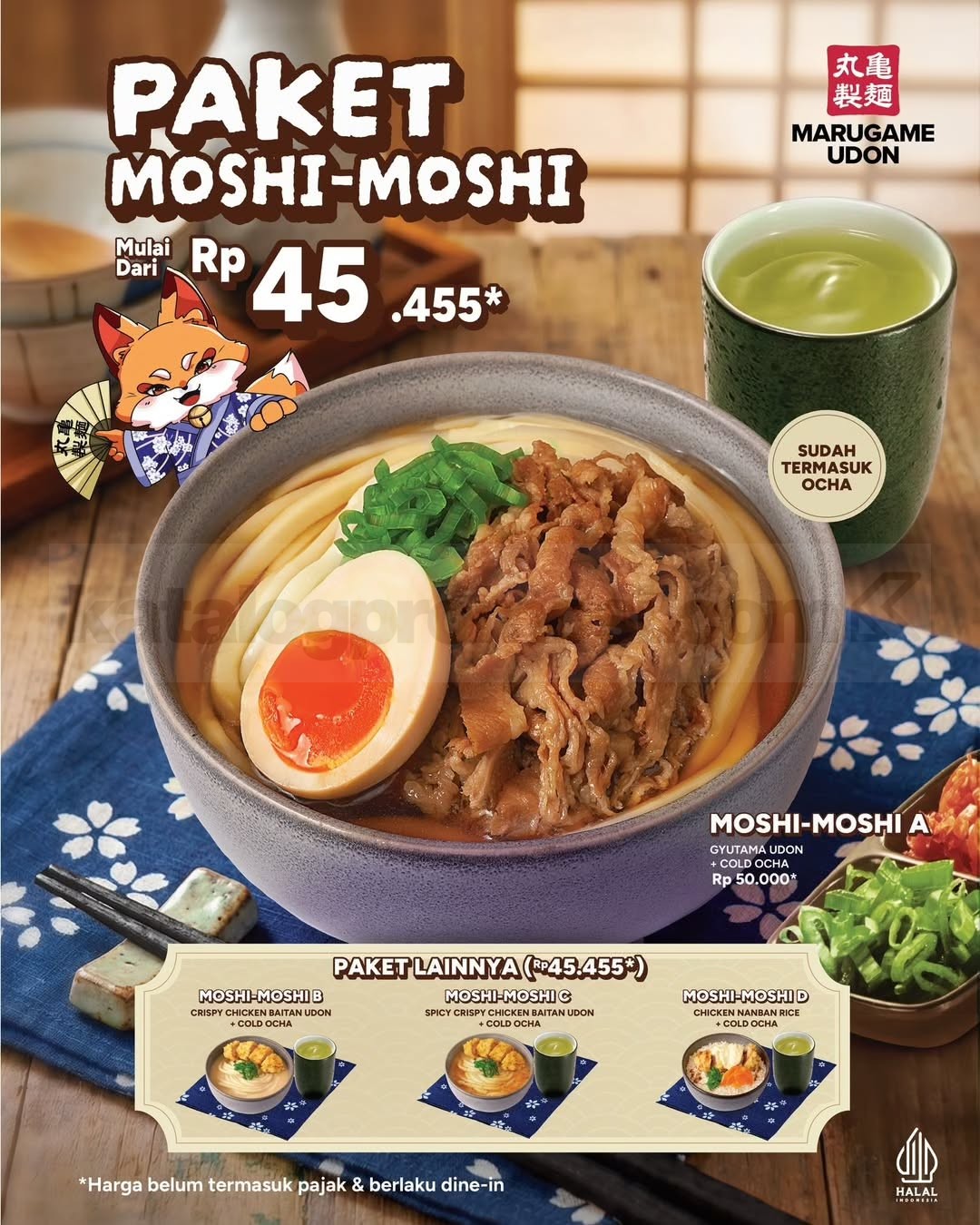 👉 Cek gambar Promo Marugame Udon Paket Moshi Moshi mulai Rp.45.455 di bawah ini untuk lihat pilihan paket dan detail menunya!