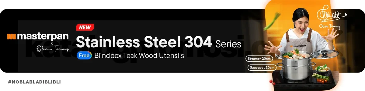 Manfaatkan Promo Master Pan x Olivia Tommy Stainless Steel 304 Bonus Blindbox untuk melengkapi kebutuhan dapur dengan cookware berkualitas tinggi plus bonus alat masak kayu jati.