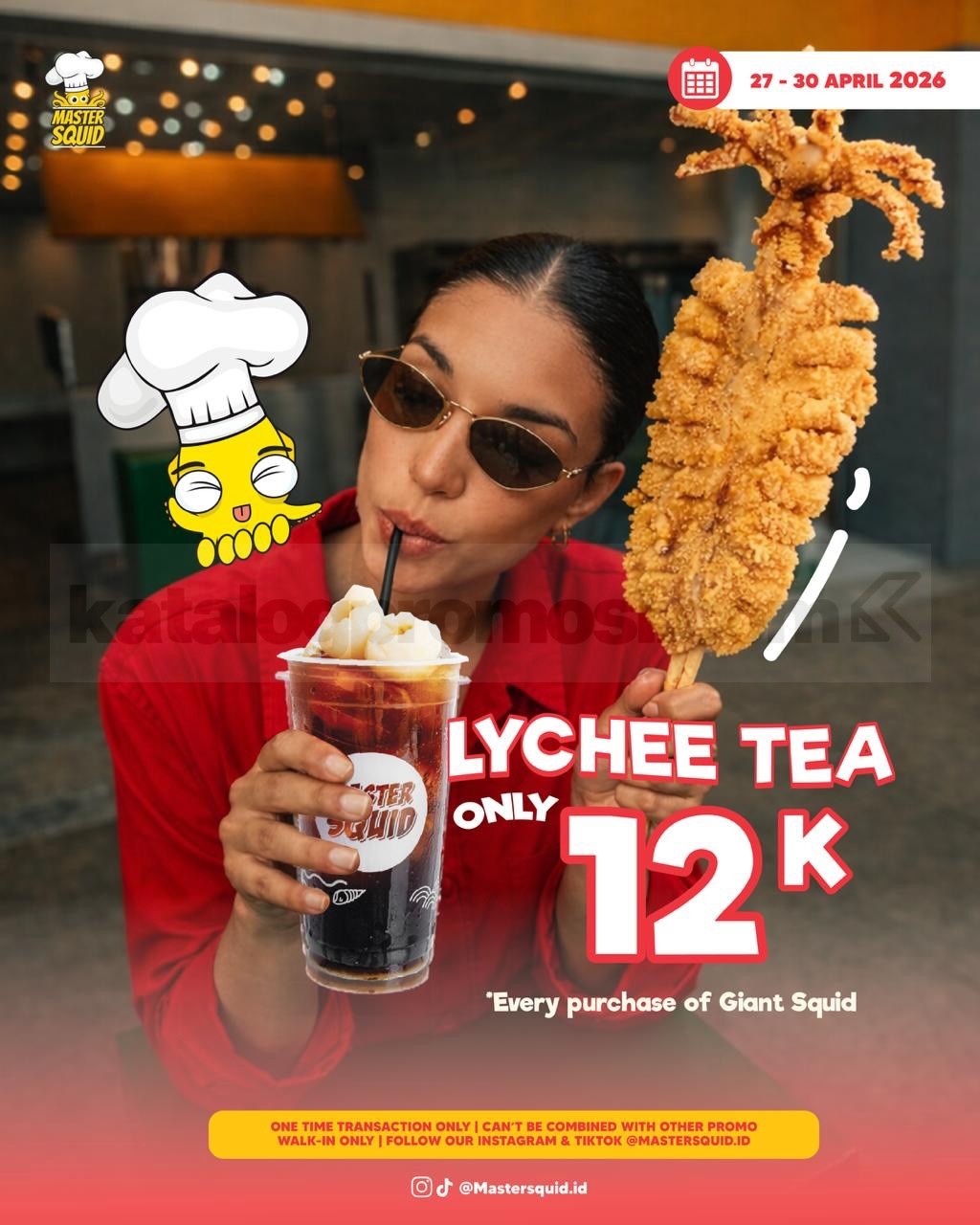 Nikmati Promo Master Squid Payday Tebus murah Lychee Tea Cuma Rp. 12.000 untuk pengalaman makan yang lebih lengkap dengan kombinasi menu favorit dan minuman segar.