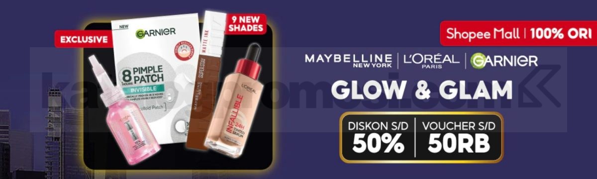 Promo Maybelline L’Oréal Garnier di Shopee Mall Diskon 50% + Voucher 50K.