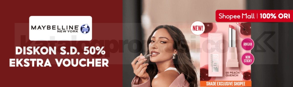 Promo Maybelline Shopee diskon hingga 50% makeup hemat dengan ekstra voucher dan produk original berlaku 21 April 2026.