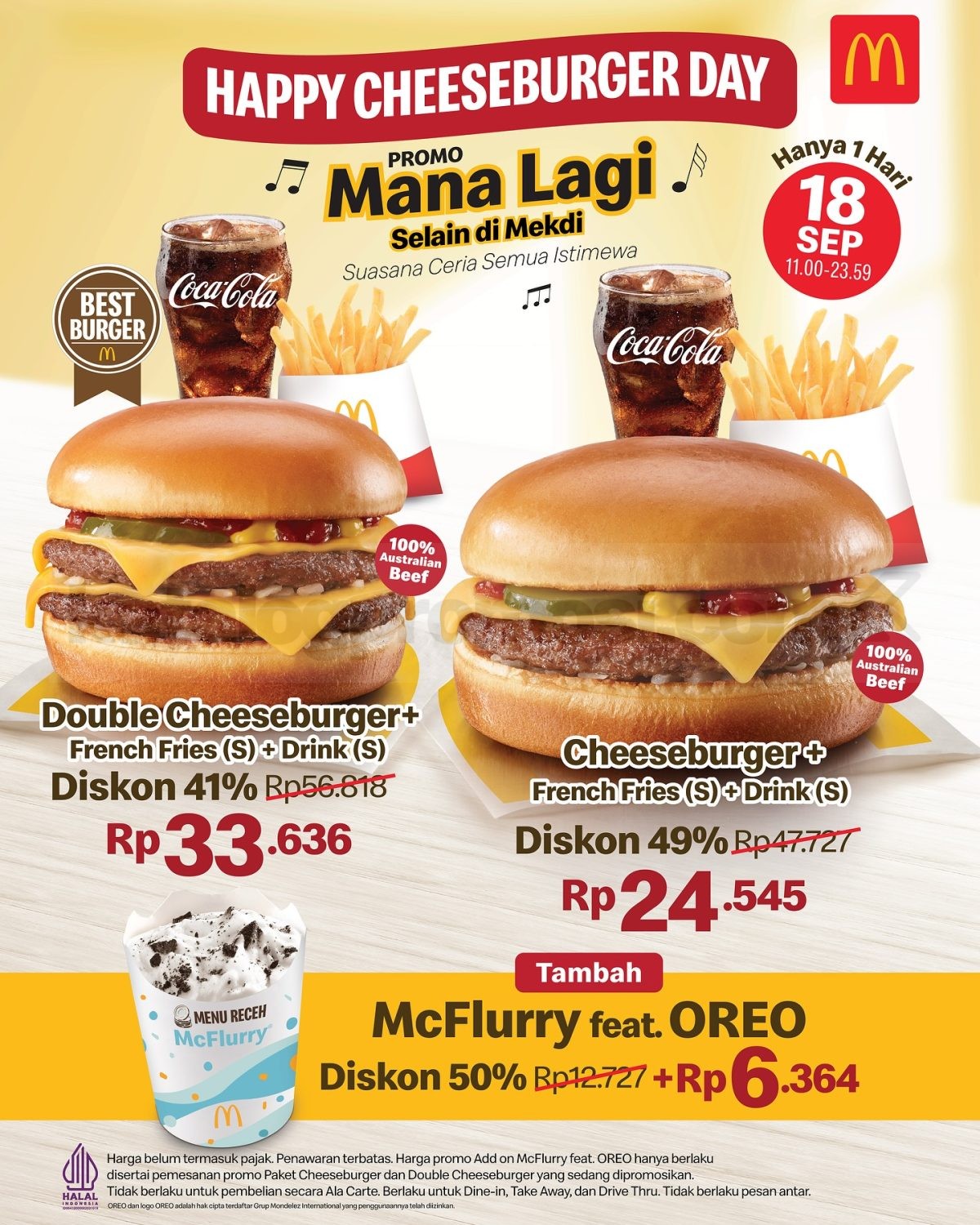 Segera serbu McDonald’s di tanggal 18 September 2025 dan nikmati cheeseburger favorit dengan harga hemat mulai Rp24 ribuan.