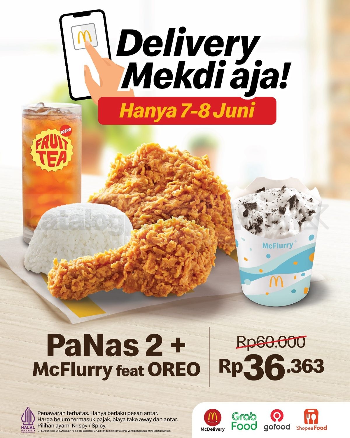 Langsung order PaNas 2 dan McFlurry favoritmu lewat layanan antar—harga cuma Rp36.363, cuma 2 hari!