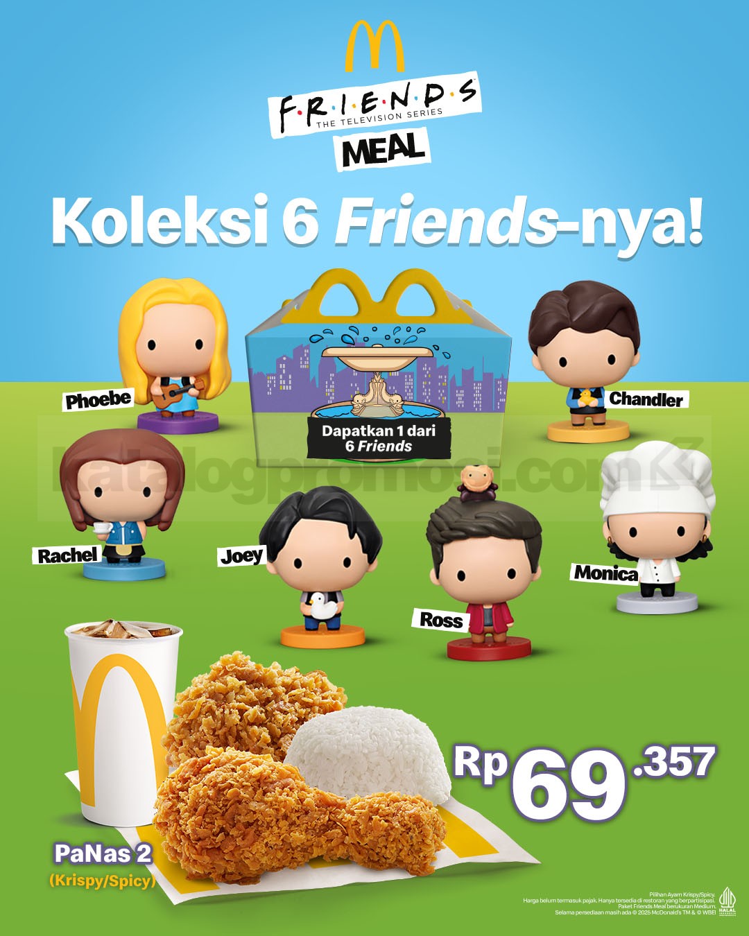 Promo McDonald’s Friends Meal cuma Rp. 69.357, dapatkan 1 dari 6 figur Friends favoritmu + nikmati menu PaNas 2, berlaku selama persediaan masih ada.