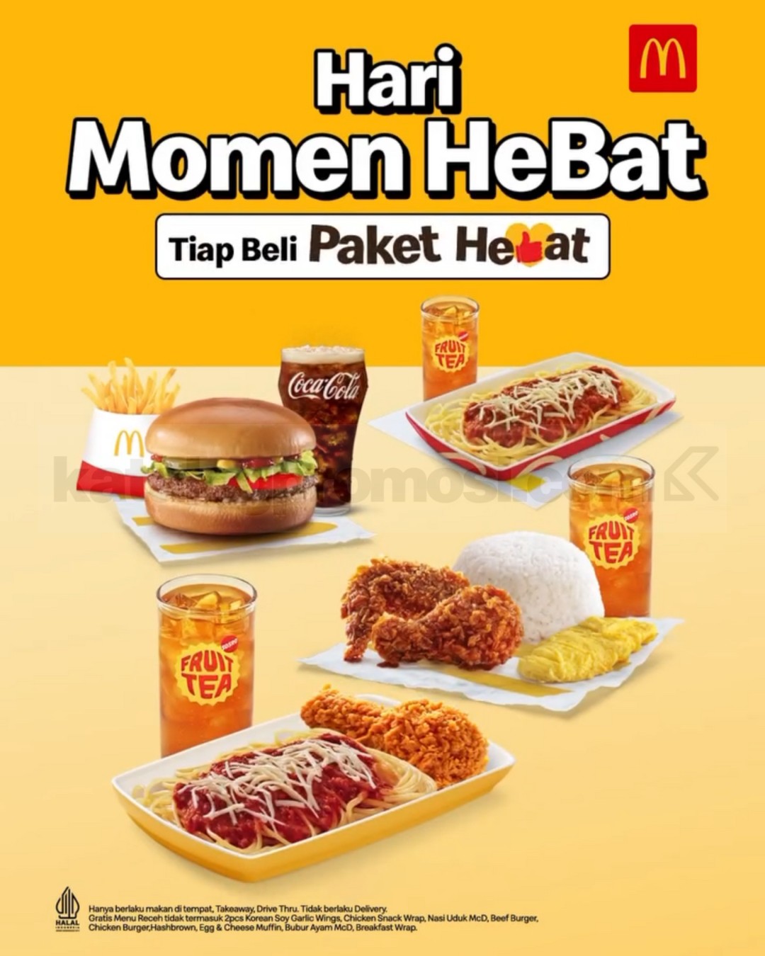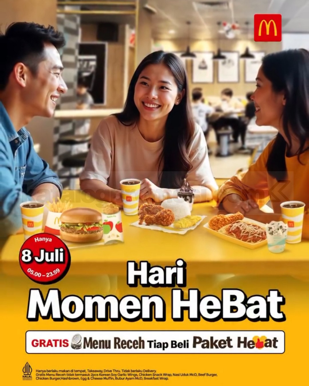 Kalau biasanya kamu nunggu promo Mekdi buat momen kumpul kecil atau makan cepat, Promo McDonalds Hari Momen HeBat gratis Menu Receh ini lumayan pas buat bikin makan lebih hemat tanpa syarat yang ribet. Tinggal pilih Paket HeBat yang kamu mau, transaksi, lalu pilih bonusnya.