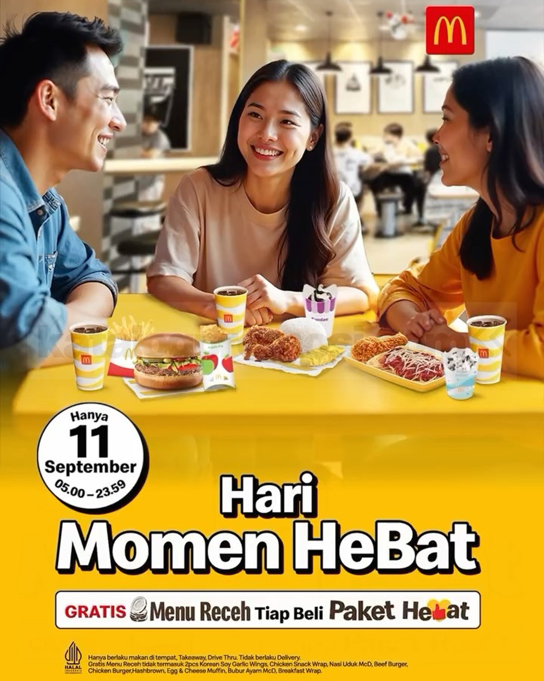 Promo McDonald’s Hari Momen HeBat gratis menu receh tiap beli Paket HeBat, berlaku 11 September 2025 di seluruh outlet Mekdi.