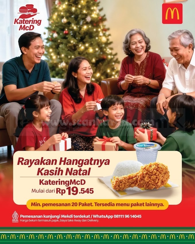 Momen kumpul di hari Natal memang lebih hangat kalau ada makanan yang gampang disiapkan dan cukup untuk semua orang. Di periode ini, McDonaldβs menghadirkan layanan katering yang bikin acara natalan lebih praktis dengan pilihan paket yang mulai Rp. 19.545 dan berlaku untuk pemesanan minimal 20 paket.