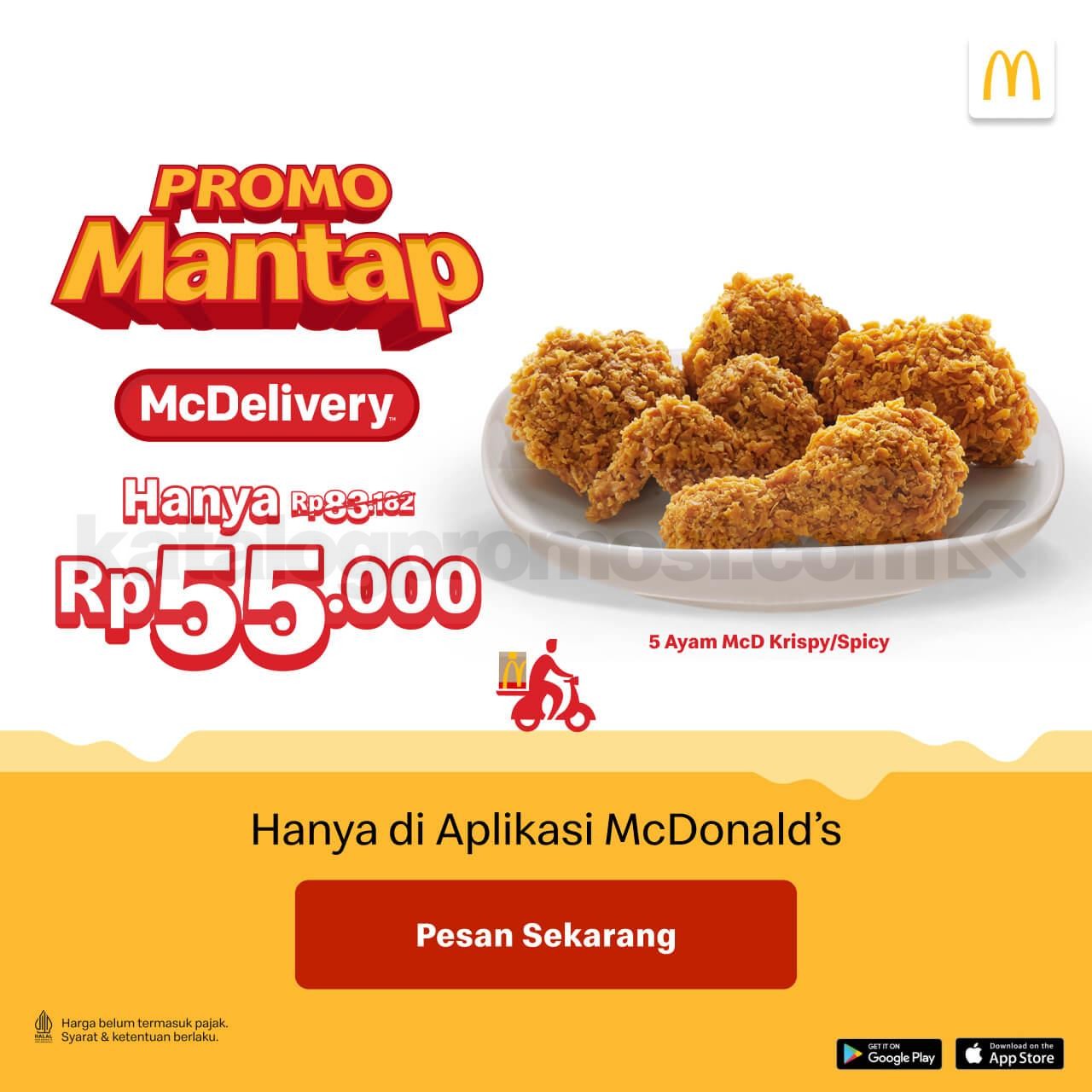 Promo McDonalds Mantap Rabu 5 Ayam Rp. 55.000 lewat McDelivery, berlaku setiap Rabu sepanjang November 2025 khusus di aplikasi McDonald’s Indonesia.