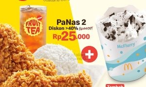 Promo McDonald’s Paket Cepat Drive Thru cuma Rp70 RIBUAN, isi 3 Ayam, 2 Rice, 2 McFlurry, 2 Coca-Cola. Diskon 40%! Tersedia mulai 14 April di Drive Thru McD!