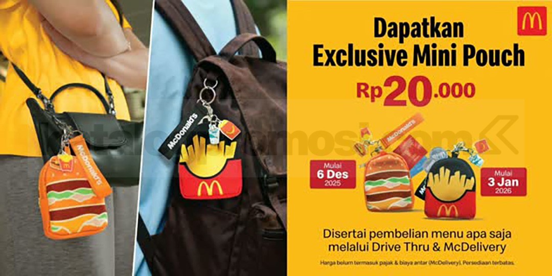 Promo MCDONALDS Tebus Murah Exclusive Mini Pouch Rp. 20ribu ini jadi kabar seru buat McD’ers yang sering lewat Drive Thru atau pesan McDelivery. Mini pouch kecil ini tampil dengan desain lucu dan praktis, gampang digantung di tas, dan cocok banget buat jadi aksesori harian.