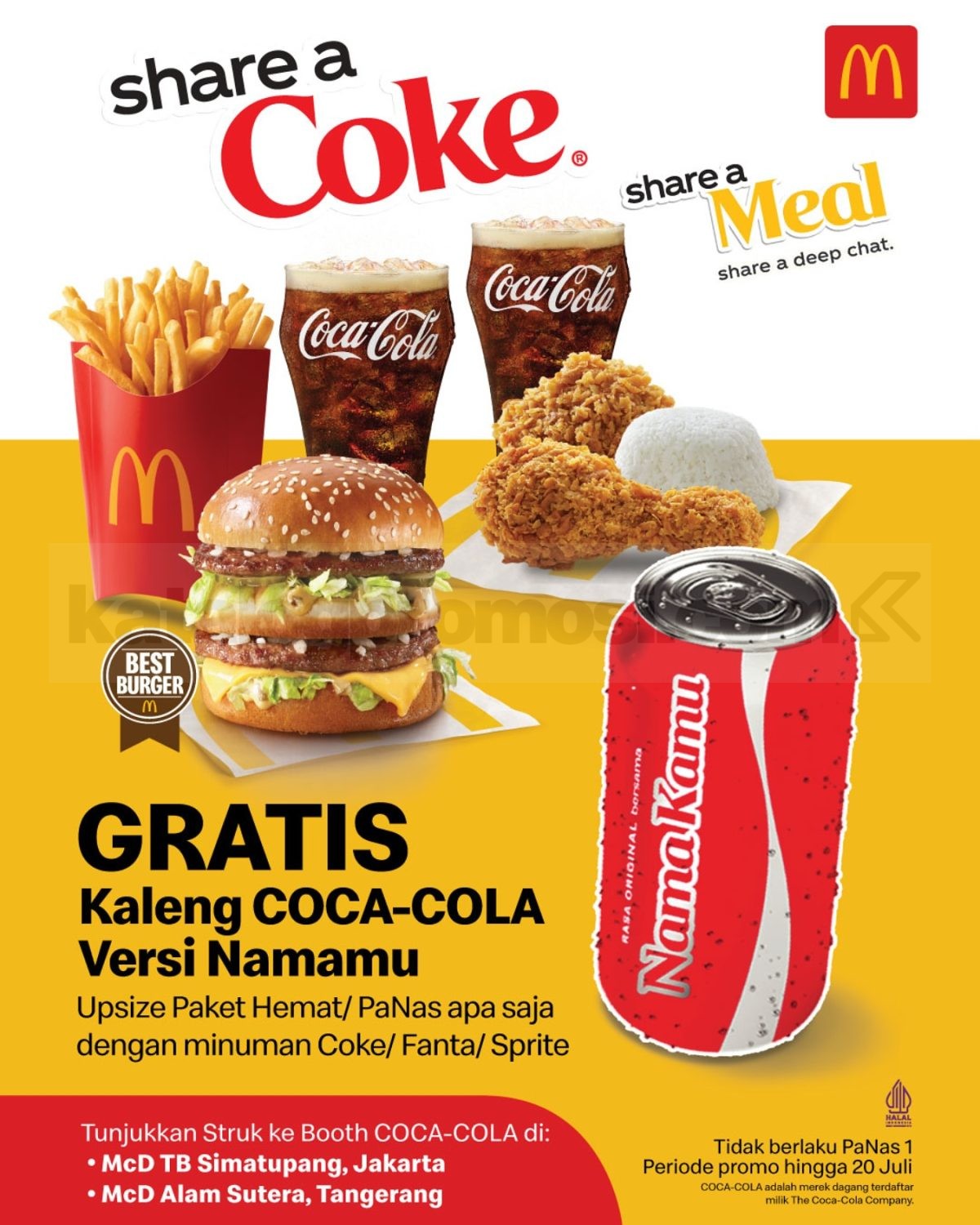 👉 Cek gambar promo McDonald’s x Coca-Cola di bawah ini untuk lihat lokasi booth dan info penukaran kaleng edisi nama kamu!