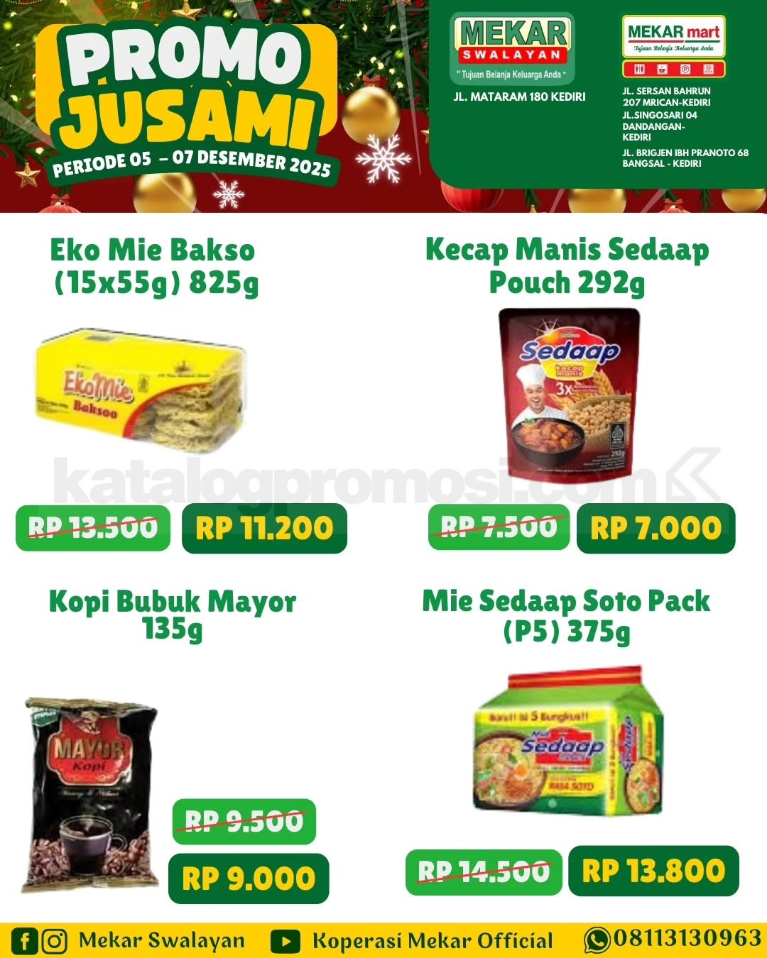 Promo Mekar Swalayan JUSAMI Kediri cuma 05-07 Desember 2025! Belanja hemat di Mekar Mart & Corner Point dengan banyak penawaran menarik tiap hari.