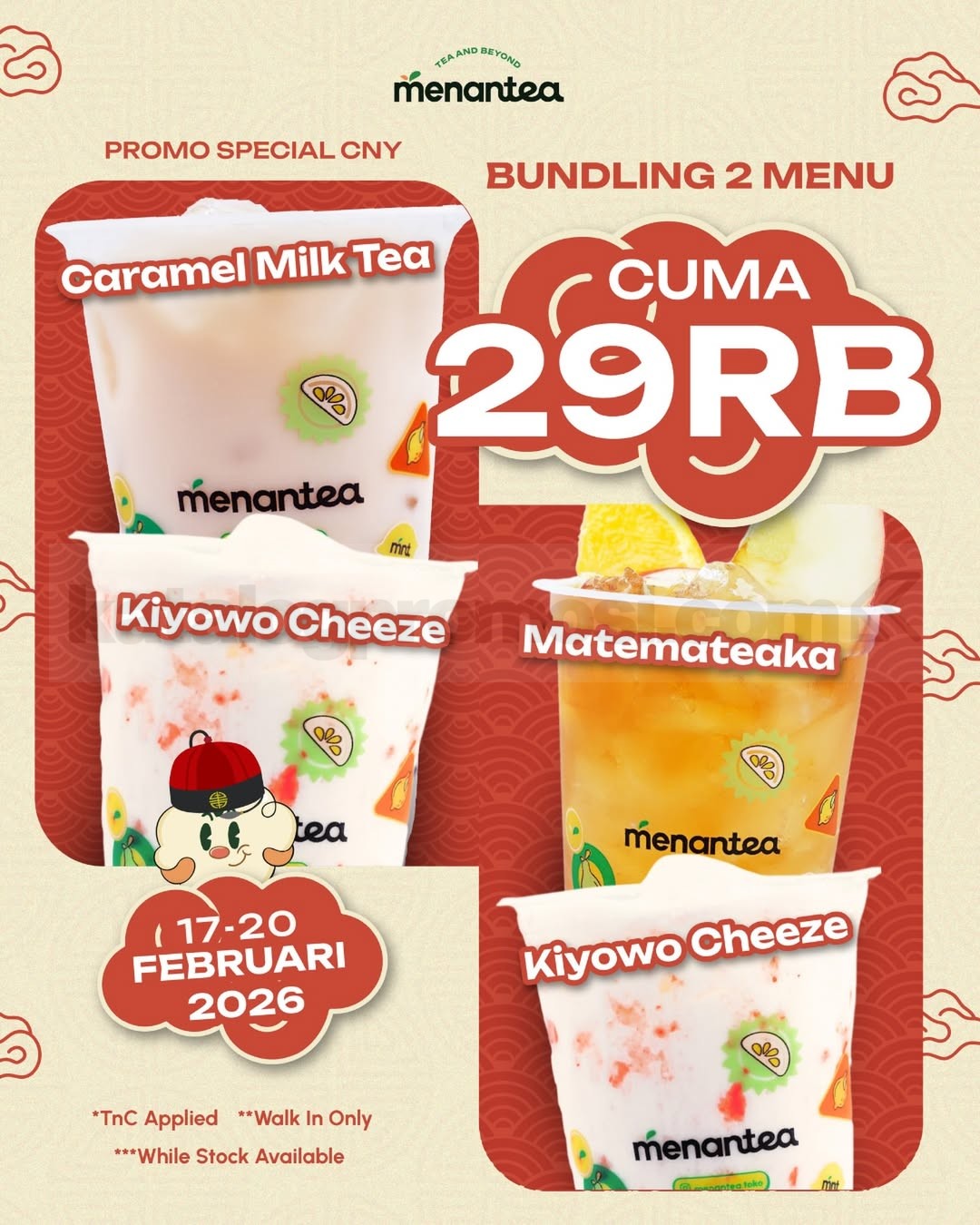 Promo Menantea Imlek Bundling 2 Menu Rp. 29 ribu paket minuman spesial walk-in berlaku 17–20 Februari 2026 di seluruh outlet
