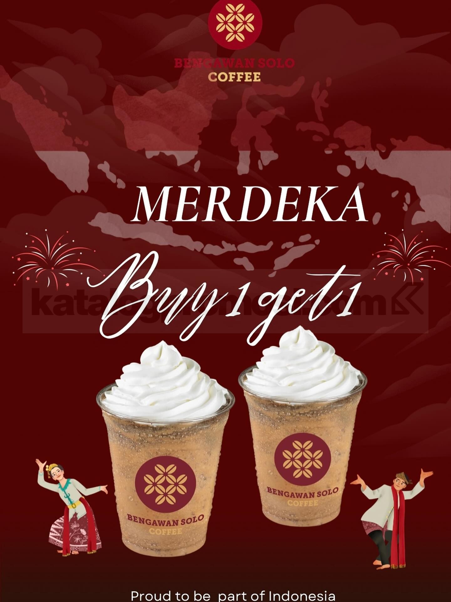 Feel the Independence Day vibes with Bengawan Solo Coffee! Dalam rangka merayakan semangat kemerdekaan Indonesia, Bengawan Solo Coffee kasih promo yang bikin hati merdeka juga β Buy 1 Get 1 Free untuk minuman favorit kamu! π