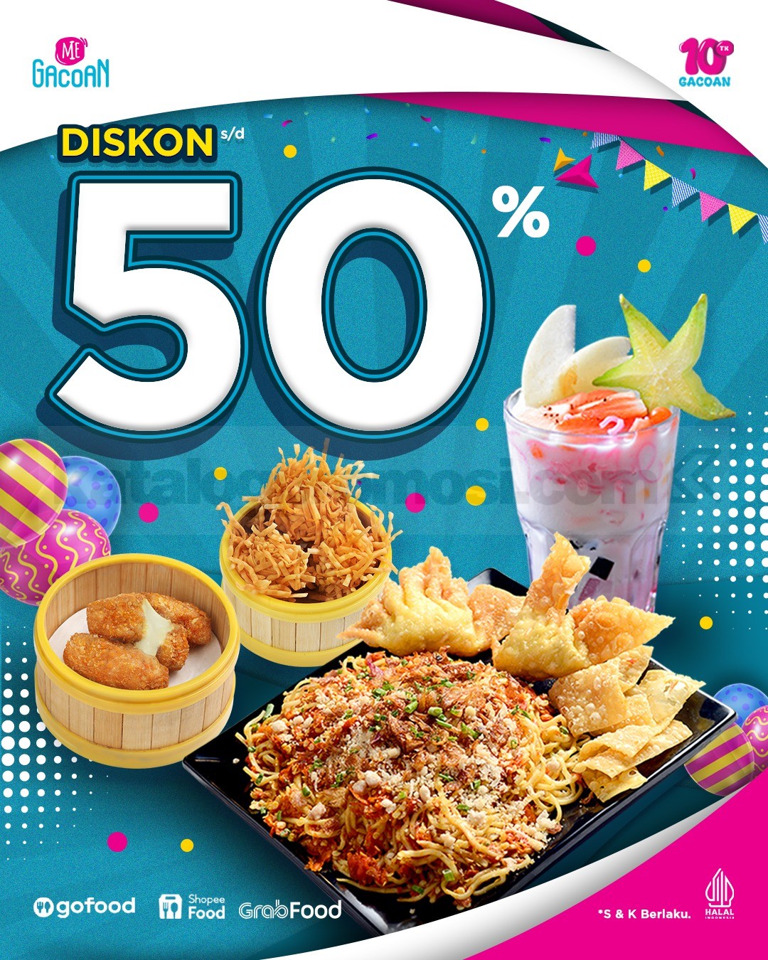 Promo hanya berlaku untuk pemesanan melalui GoFood, ShopeeFood, dan GrabFood.