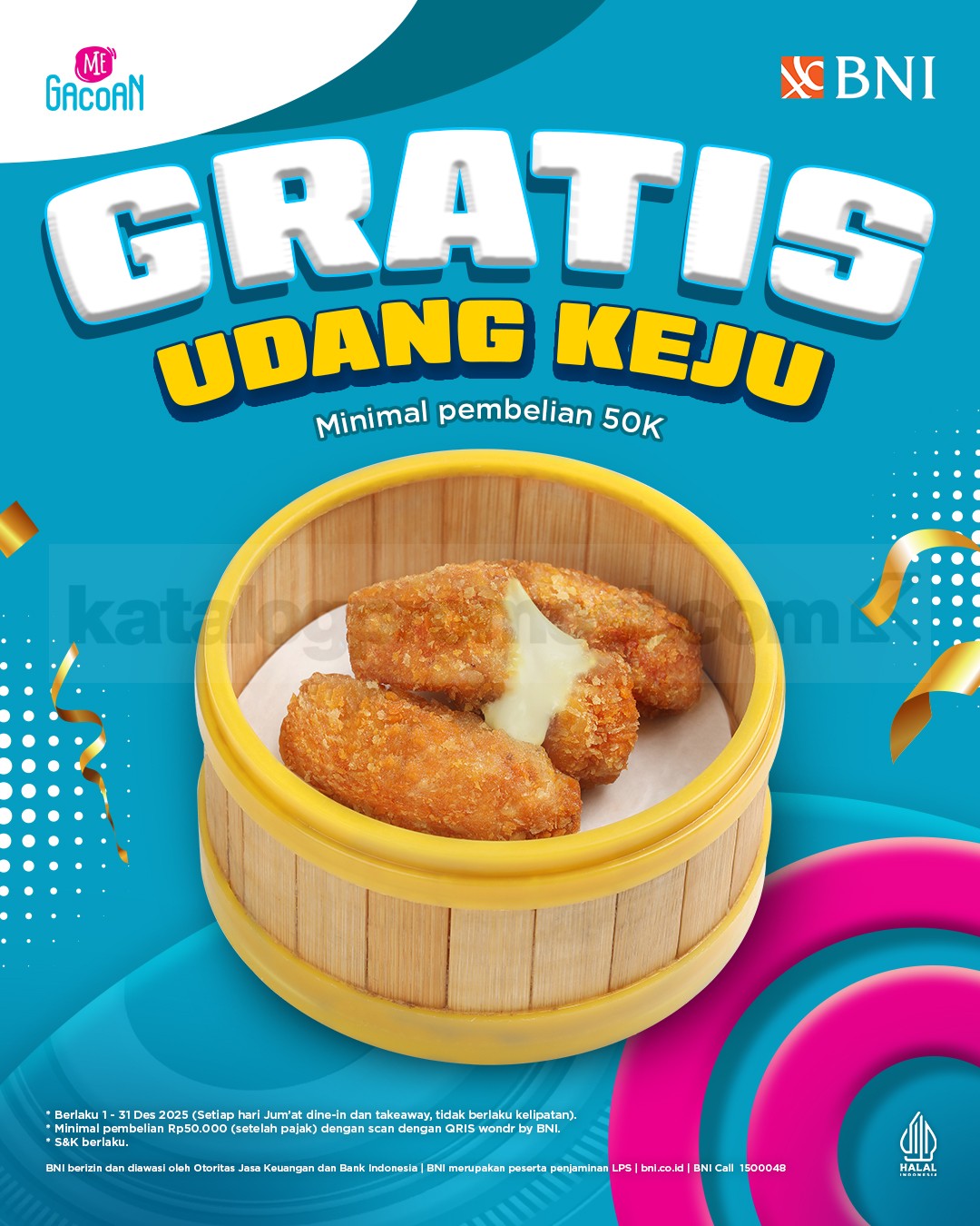 Beli Mie Gacoan gratis Udang Keju⁉️ 😁 Dengan Promo Mie Gacoan QRIS Wondr by BNI Gratis Udang Keju, pengguna QRIS Wondr by BNI berkesempatan mendapatkan dimsum favorit ini secara cuma-cuma! Setiap hari Jumat selama Desember 2025, cukup belanja minimal Rp. 50.000 dan scan QRIS BNI di kasir, kamu langsung dapat bonus Udang Keju.