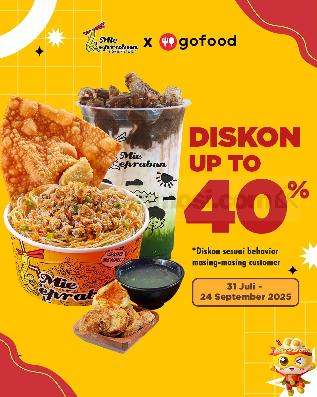 Promo Mie Keprabon GoFood diskon hingga 40% berlaku mulai tanggal 31 Juli–24 September 2025 di seluruh outlet Mie Keprabon via GoFood.
