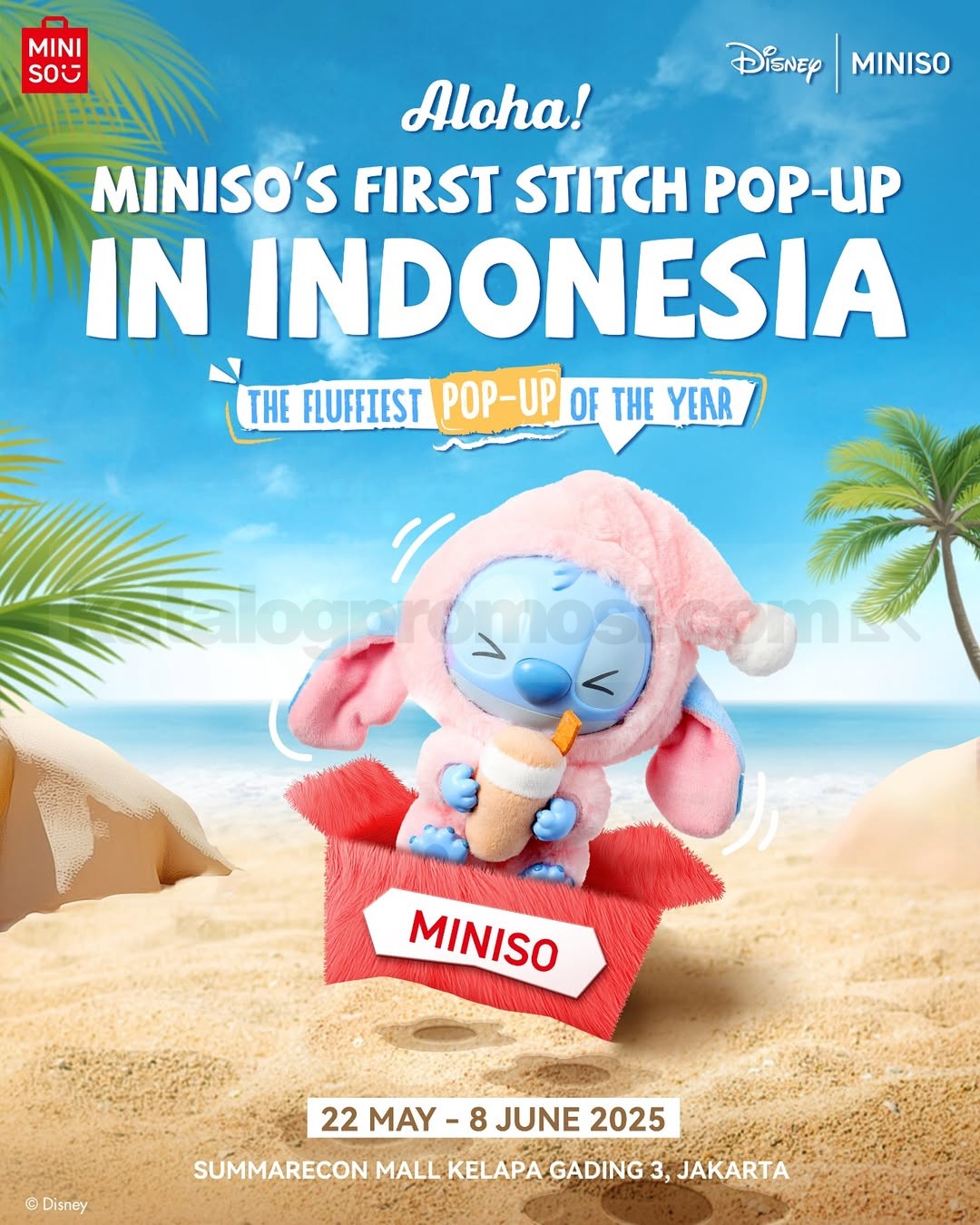 Promo Miniso Disney Stitch hadir di Summarecon Kelapa Gading 3 mulai 22 Mei 2025! Ada koleksi eksklusif, blind box, dan hadiah spesial!