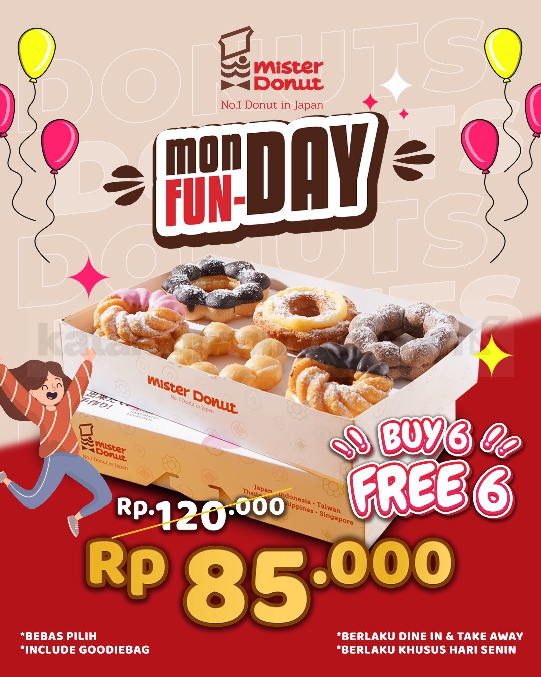 - Promo berlaku di seluruh outlet Mister Donut.