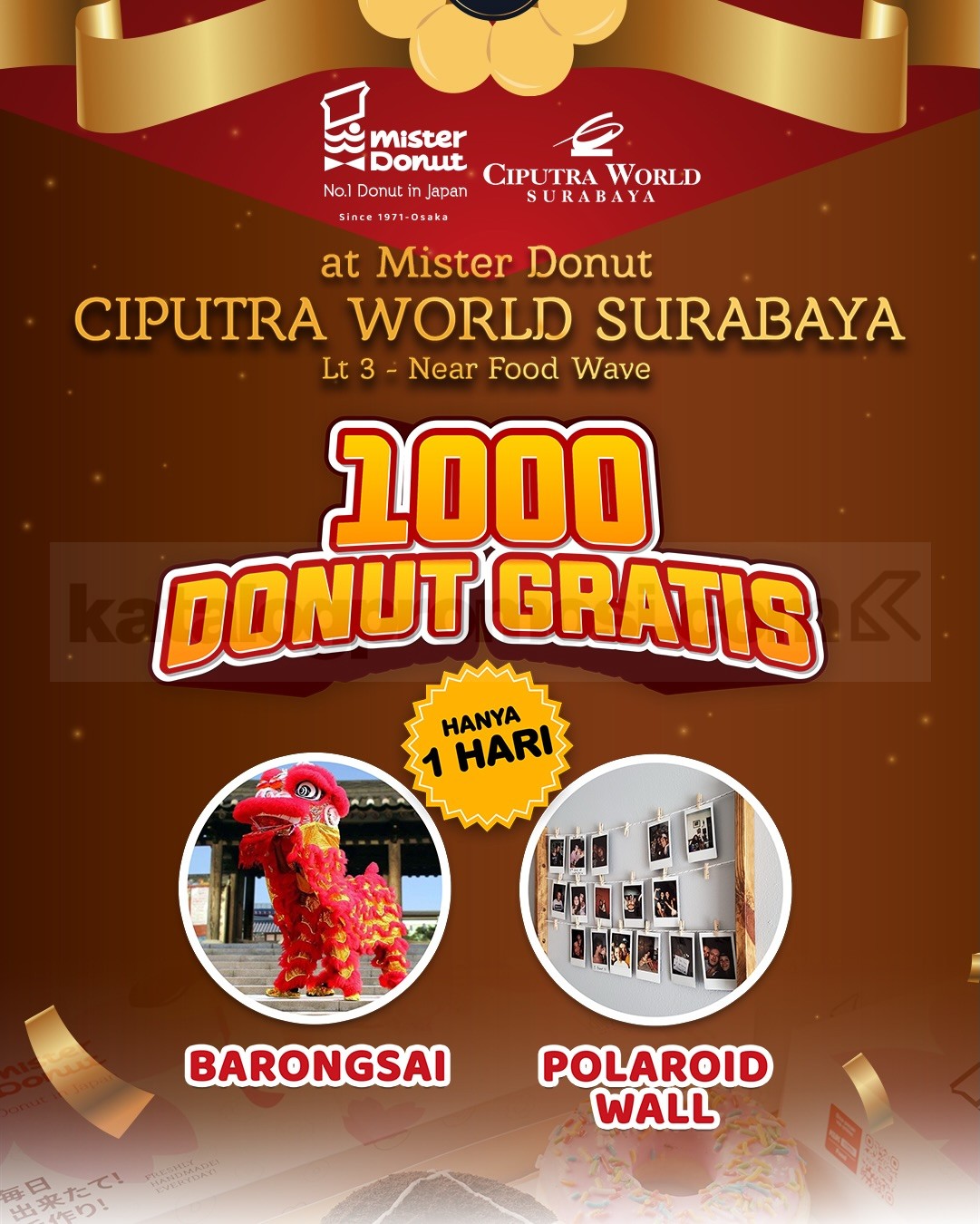 - 1000 donut GRATIS untuk pengunjung (hanya 1 hari)