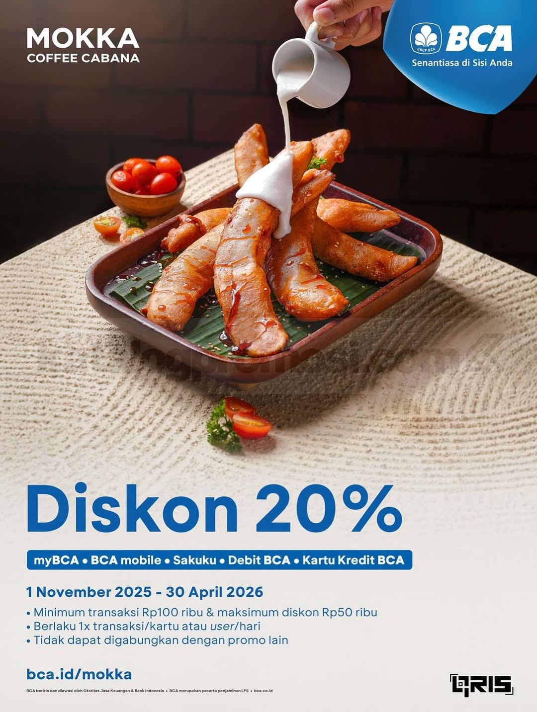 Promo Mokka Coffee Cabana Diskon 20% untuk Pengguna BCA, nikmati potongan makanan & minuman dengan minimum transaksi Rp. 100.000, berlaku 1 November 2025 – 30 April 2026