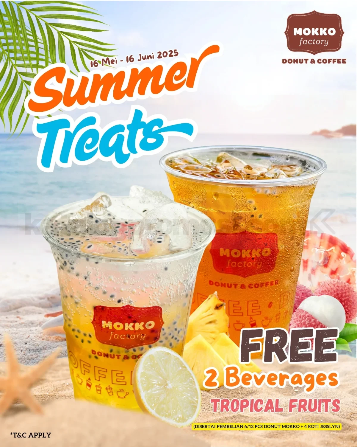 Rasakan kesegaran Promo Mokko Factory Gratis 2 Minuman Tropical ini sambil menikmati donut dan roti favorit kamu!