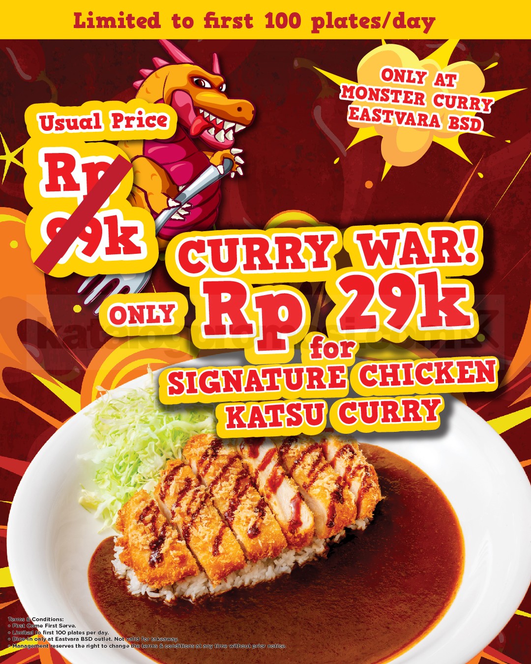 Promo Monster Curry Curry War Rp39.000 mulai 29 Agustus 2025 di Eastvara BSD, Signature Chicken Katsu Curry terbatas 100 porsi per hari