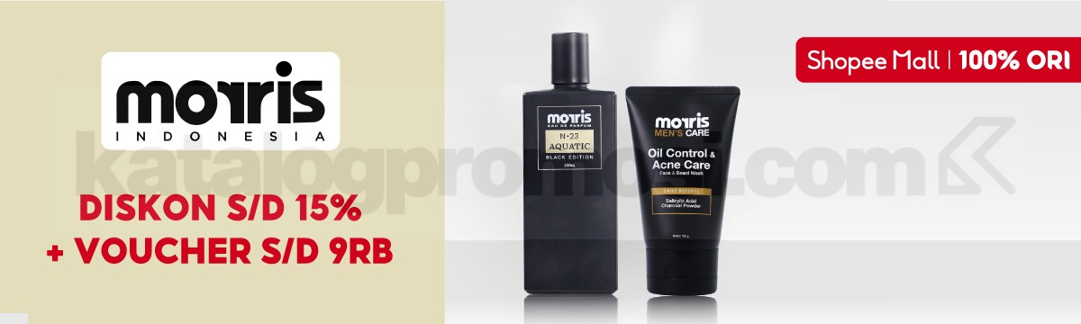 Produk-produk Morris dari parfum pria dan wanita, face wash, body serum sampai pomade lagi diskon hingga 15%, lho! 😍 Gak cuma itu, kamu juga bisa dapetin voucher potongan sampai Rp9 ribu buat belanja makin hemat.