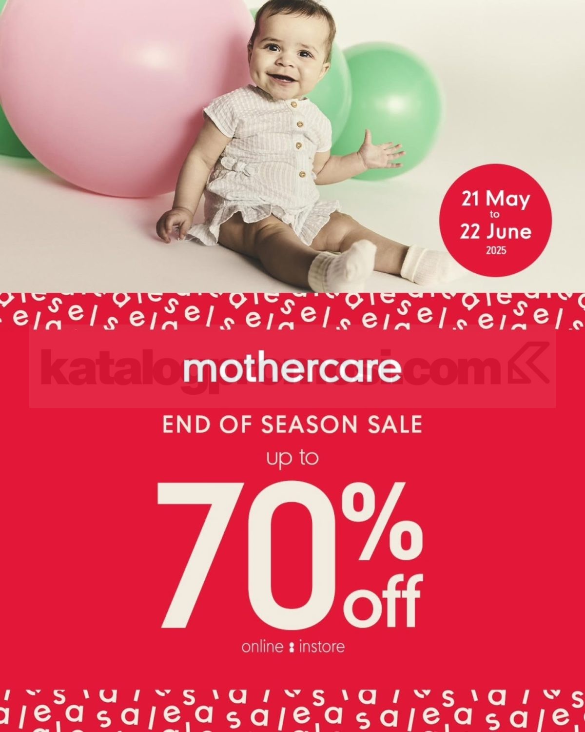 Promo Mothercare End Of Season Sale Up To 70% Off*, berlaku hingga 22 Juni 2025.
