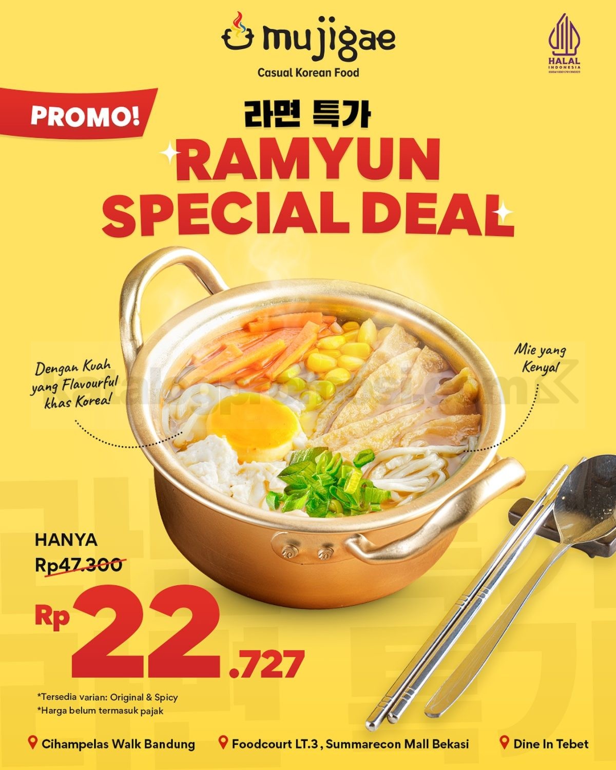 Langsung aja mampir dan nikmati Ramyun Special Deal dari Mujigae sekarang juga. Tapi ingat, promo ini hanya berlaku di outlet-outlet tertentu ya, jadi pastikan kamu ke lokasi yang tepat!