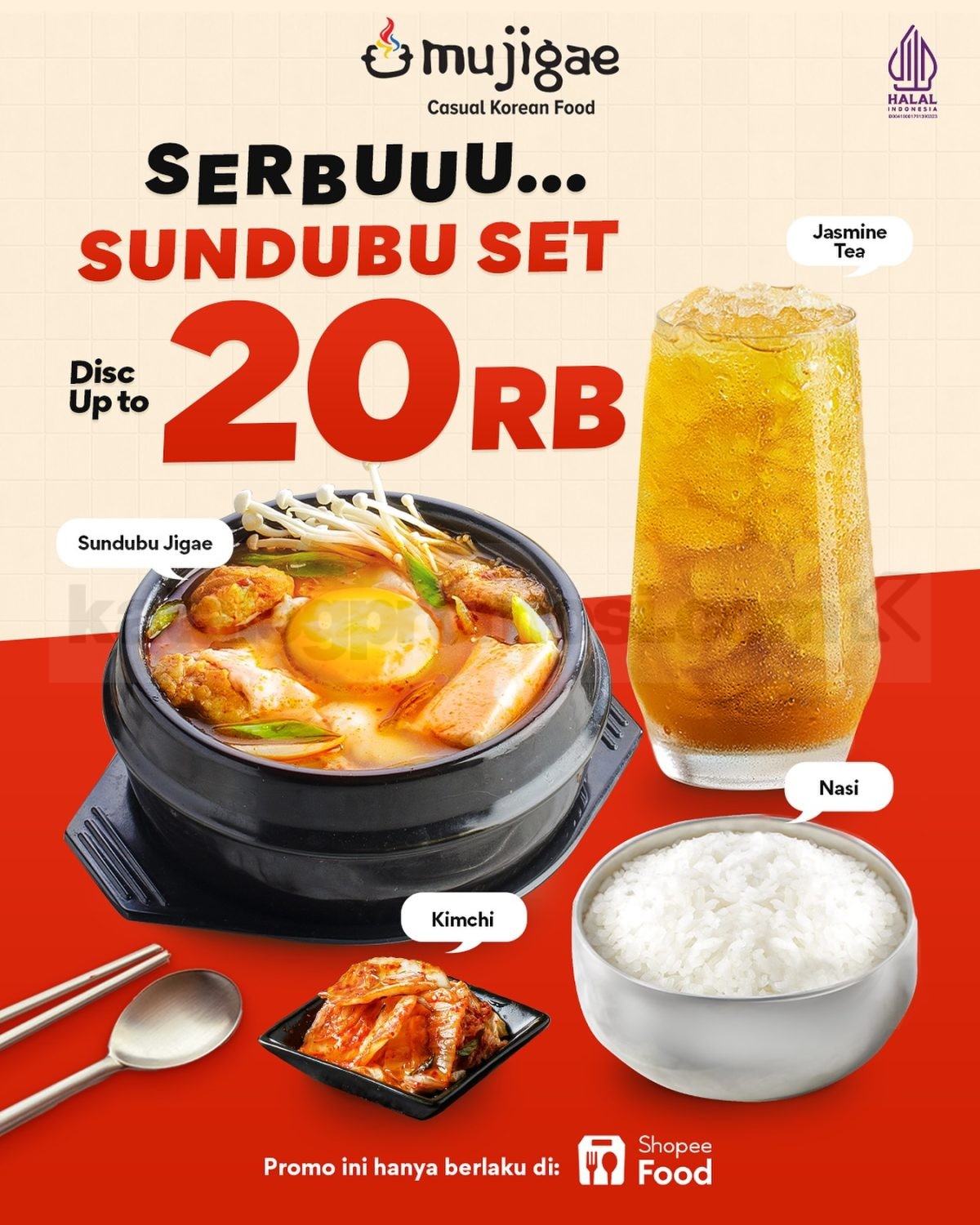👉 Cek gambar promo Mujigae Sundubu Set di bawah ini untuk lihat tampilan lengkap set-nya dan info klaim diskonnya!