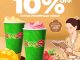 Diskon berlaku untuk menu makanan tertentu sesuai ketentuan outlet.