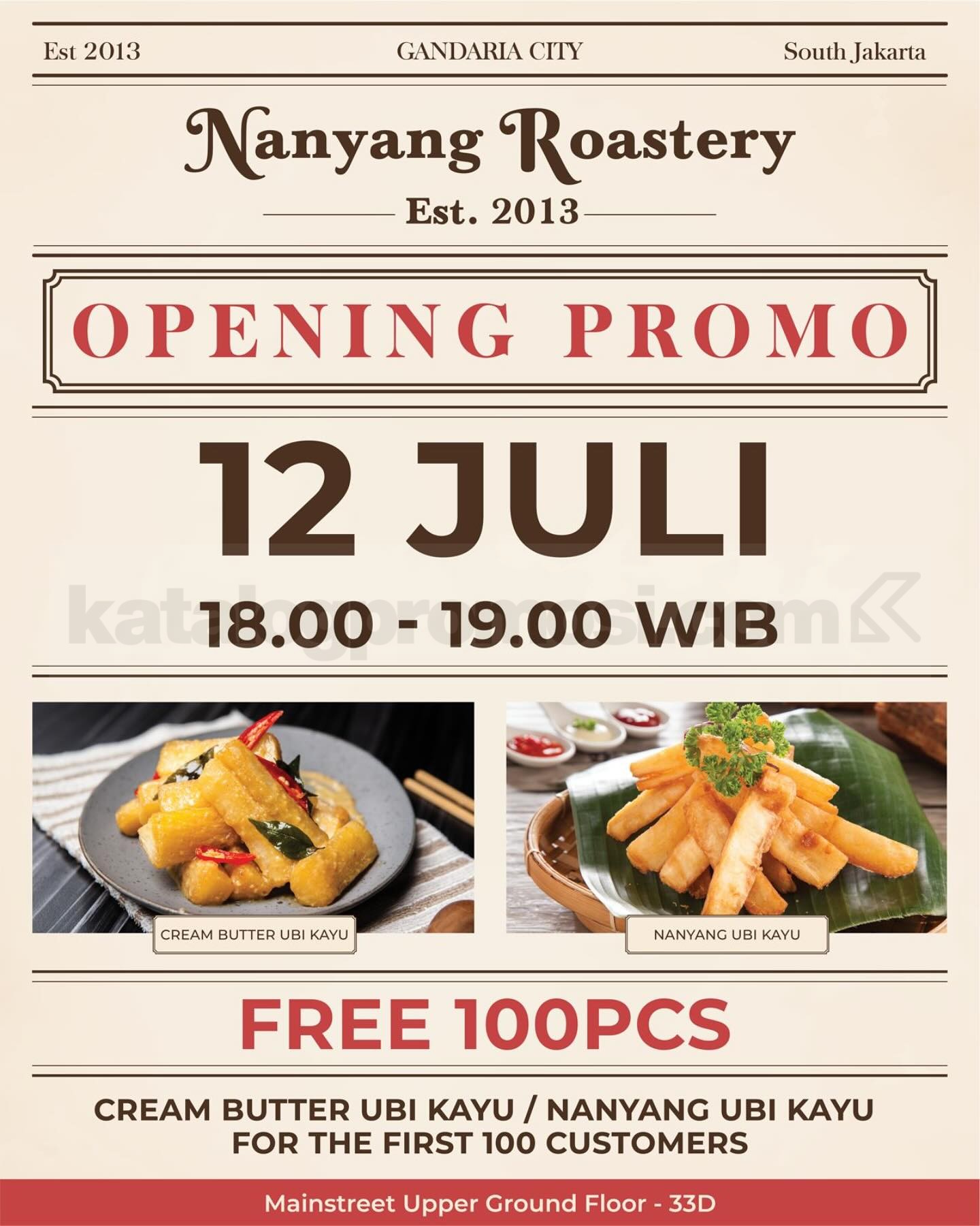Promo Nanyang Roastery Gandaria City hanya di tanggal 12 Juli 2025! Bagi-bagi menu gratis jam 17.00–18.00 untuk 100 pengunjung pertama. Catat jamnya sekarang!