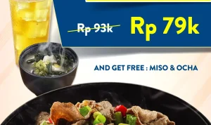 Ceria Double Rp86K dapat Beef Bowl (Yakiniku/Teriyaki/Negikara) + Sambal Bawang Chicken Ramen + Ocha (Hot/Cold).