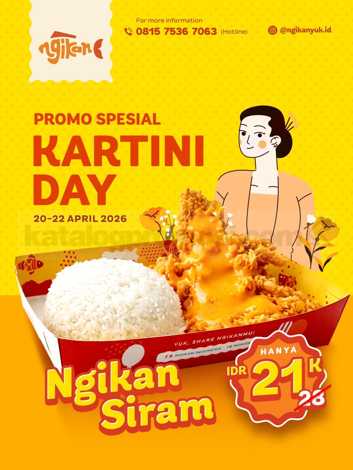 Promo Ngikan Hari Kartini Ngikan Siram Rp.21.000 bisa digunakan dengan melakukan pembelian menu Ngikan Siram langsung di outlet yang ikut program selama tanggal 20 – 22 April 2026. Harga Rp.21.000 berlaku sesuai periode promo Hari Kartini di lokasi yang tercantum.