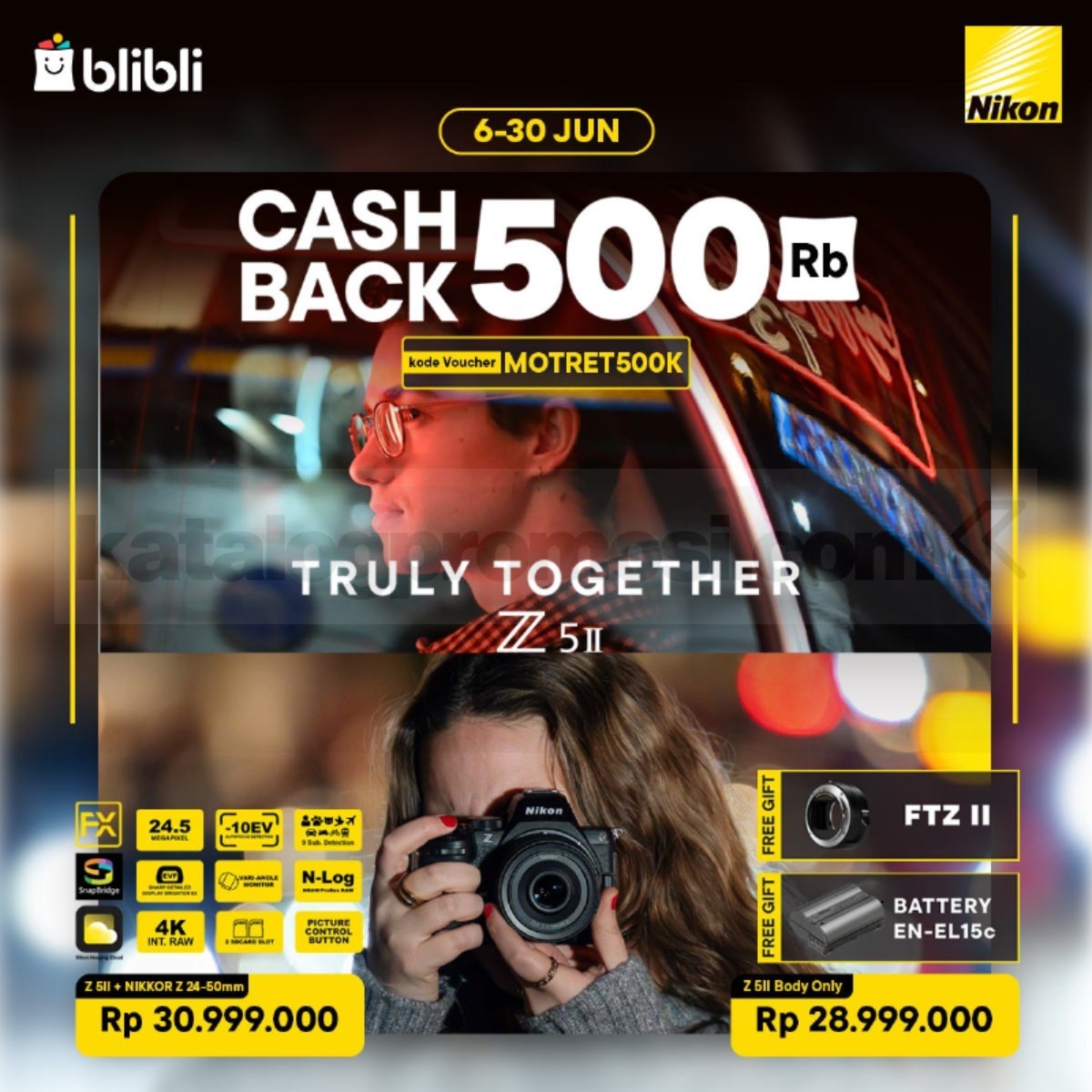 - Promo berlaku untuk pembelian produk Nikon Z5 II di platform Blibli selama periode 6β30 Juni 2025.