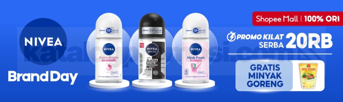 👉 Cek gambar Promo Nivea Brand Day di bawah ini untuk lihat detail harga serba Rp. 20.000 dan bonus minyak goreng gratis
