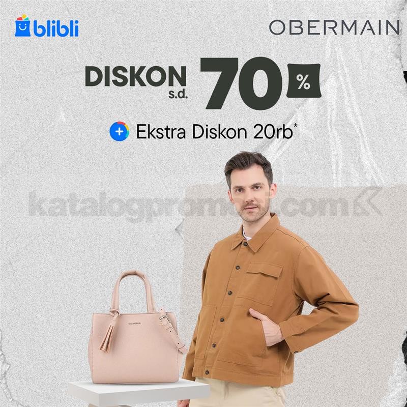 Promo Obermain Blibli diskon hingga 70% plus ekstra potongan Rp. 20.000 untuk berbagai outfit dan aksesoris, belanja online berlaku mulai tanggal 01 Januari 2026 – 11 Januari 2026.