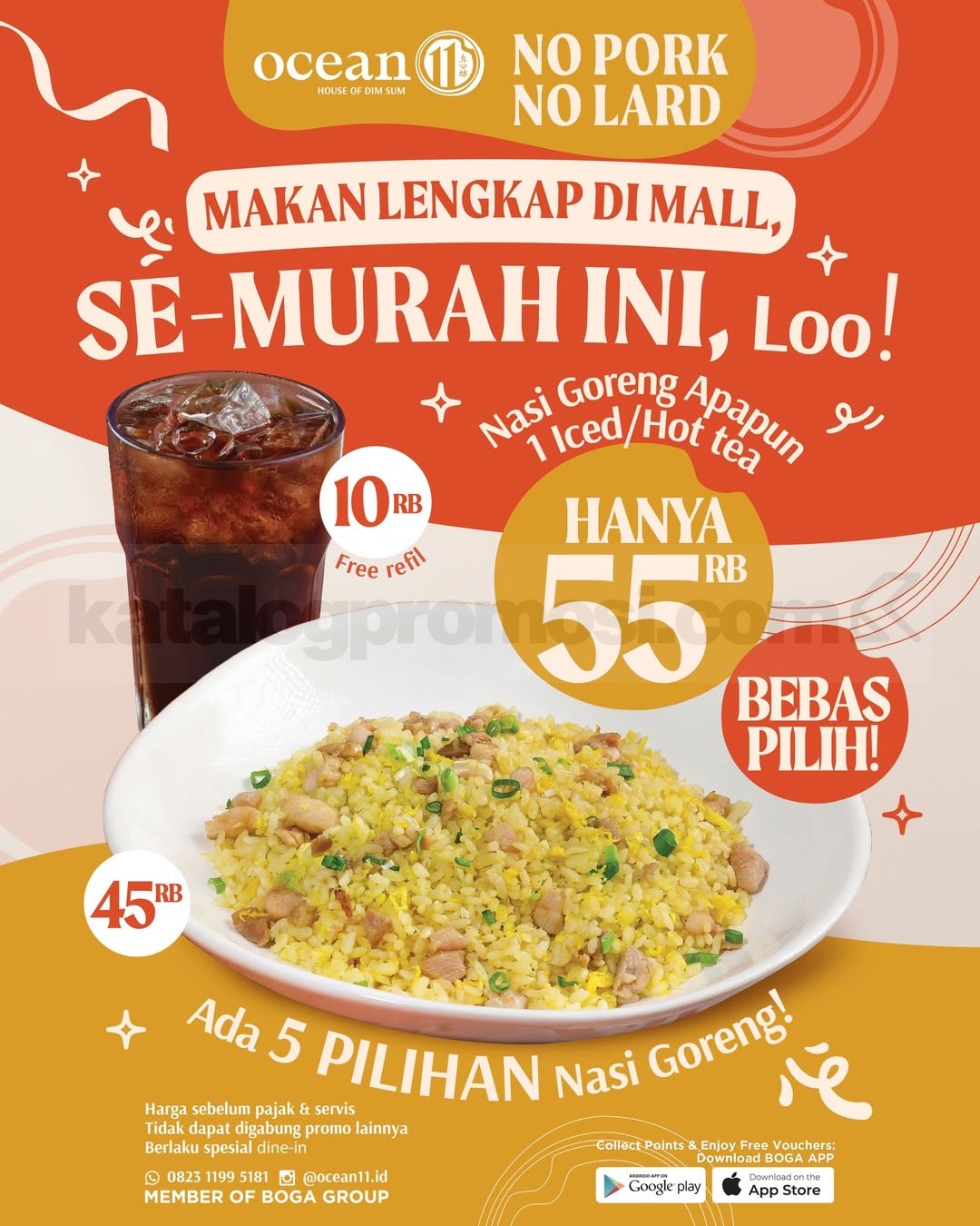 Promo Ocean 11 Paket Nasi Goreng dan Minuman Rp. 55.000 berlaku khusus dine in.