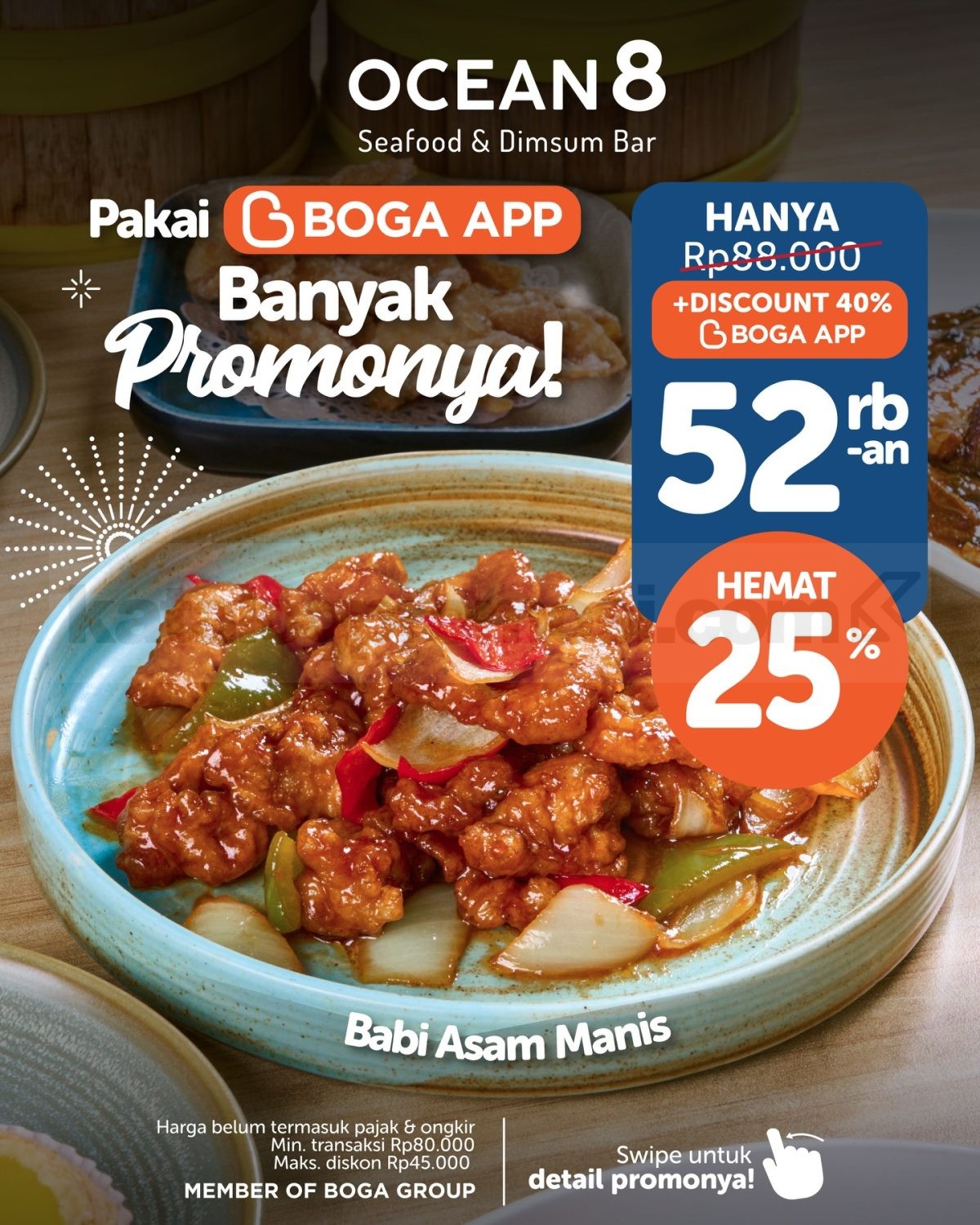 Promo Ocean 8 Pasti CUAN Delivery Diskon hingga 40% nikmati potongan sampai Rp. 45.000 via Boga App, GoFood, GrabFood berlaku selama periode promo di Lippo Mall Puri.