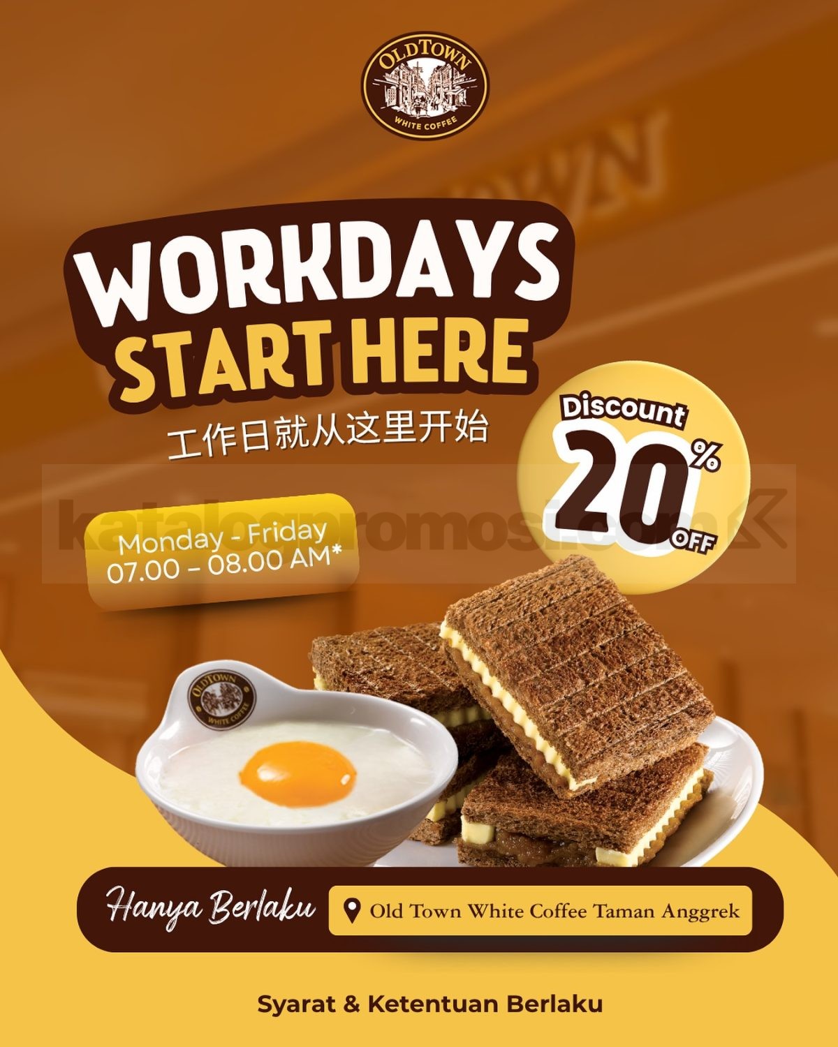 Promo ini cuma berlaku di Old Town White Coffee Taman Anggrek ya, jadi jangan sampai kelewatan! Yuk, manfaatin Promo Old Town White Coffee Workdays Menu Sarapan Diskon 20% biar pagi kamu makin cerah dan kerja makin produktif! 😋☀️