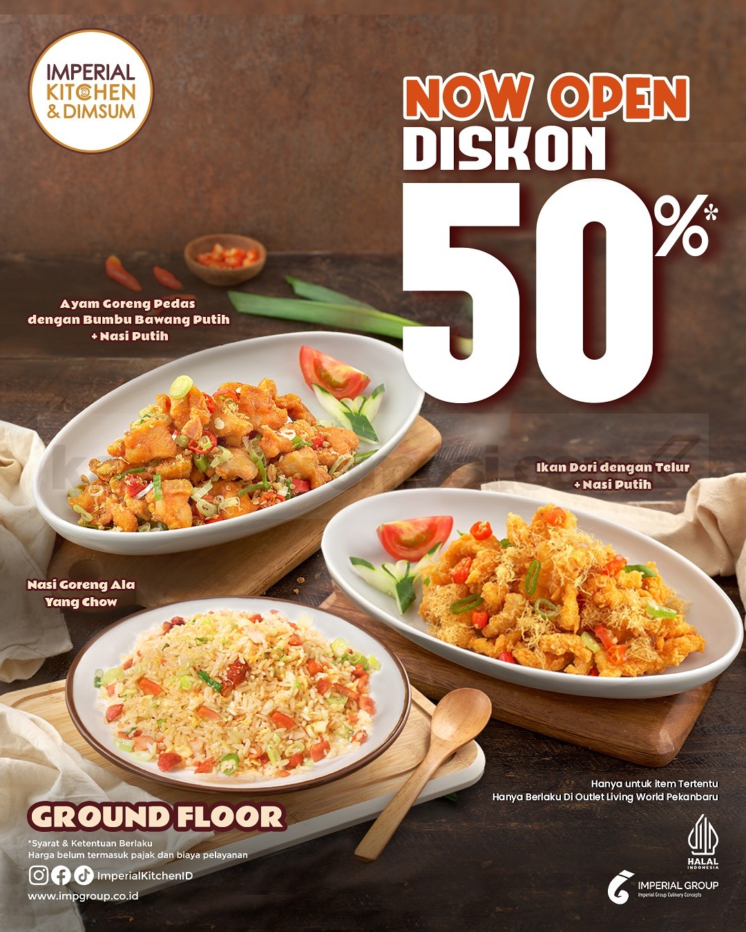 Promo Opening Imperial Kitchen & Dimsum Living World Pekanbaru Diskon 50%, Berlaku 28 November 2025 – 11 Desember 2025.